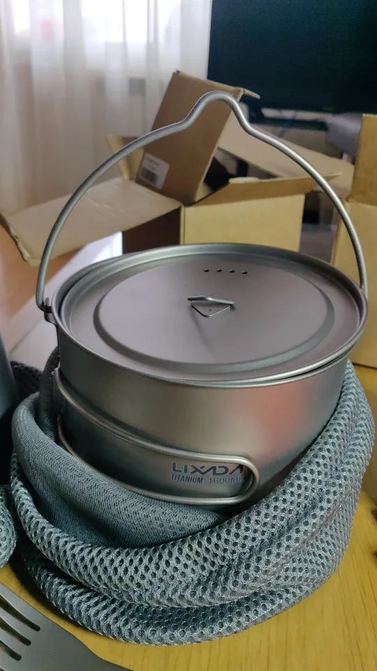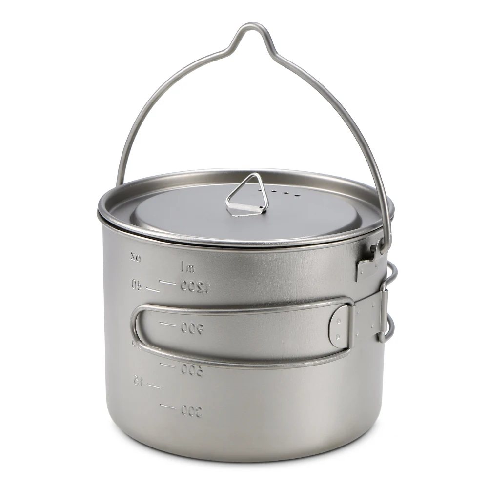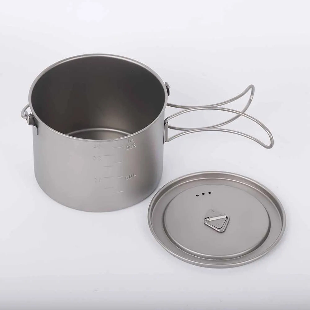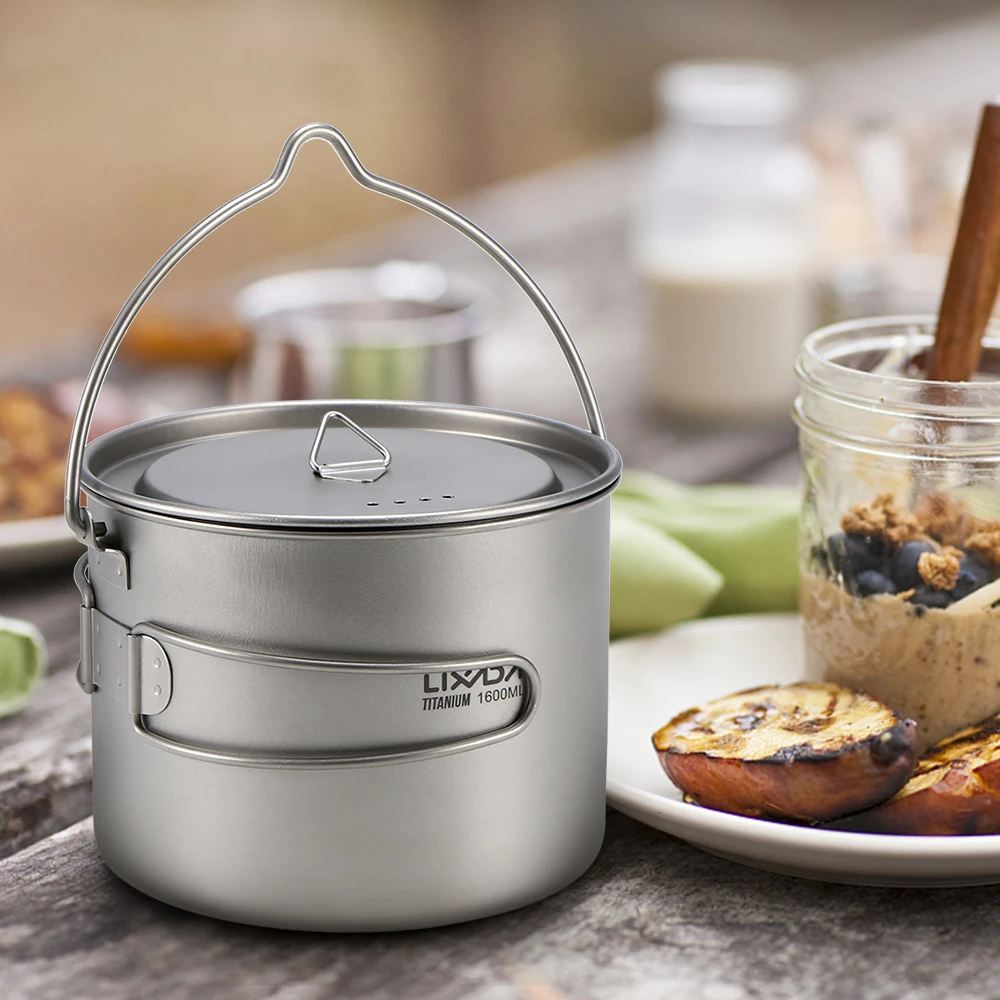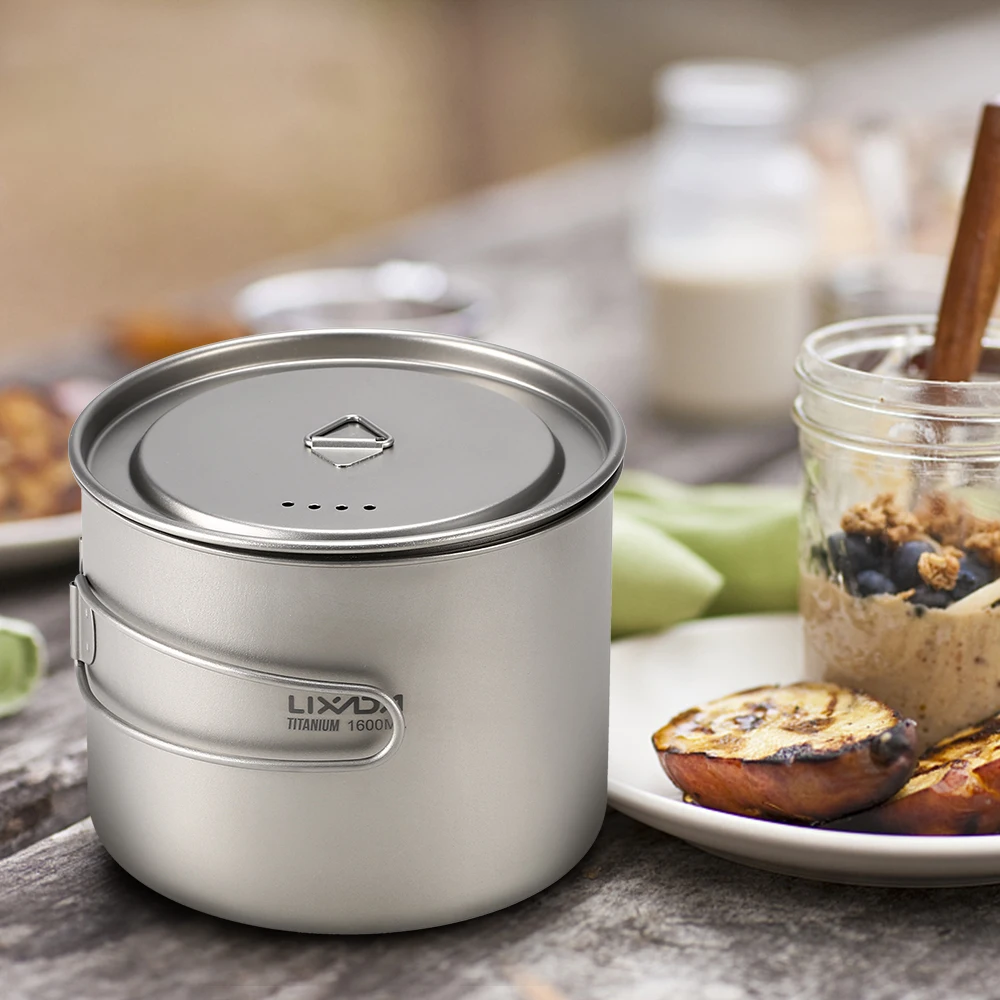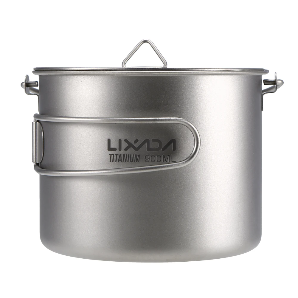 Титановая чашка Lixada, 900 мл1600 мл, сверхлегкая портативная чашка с крышкой и складной ручкой, для кемпинга, походов, пеших прогулок
