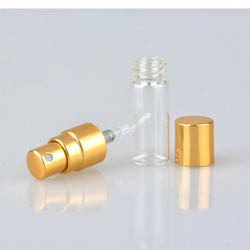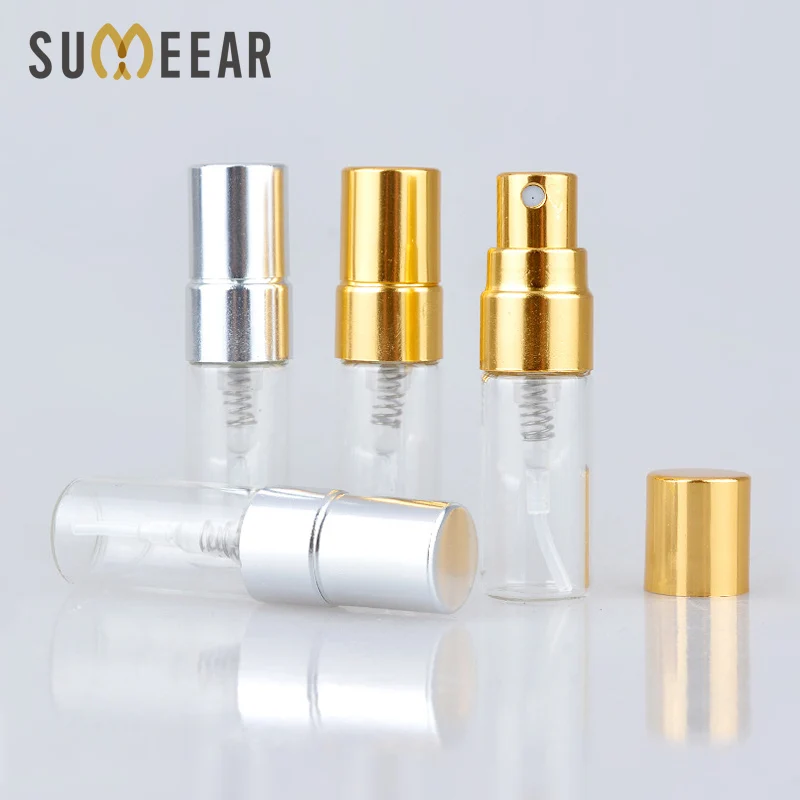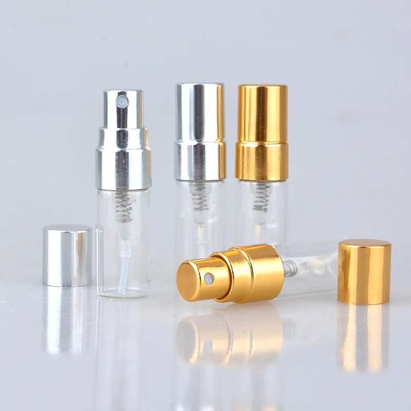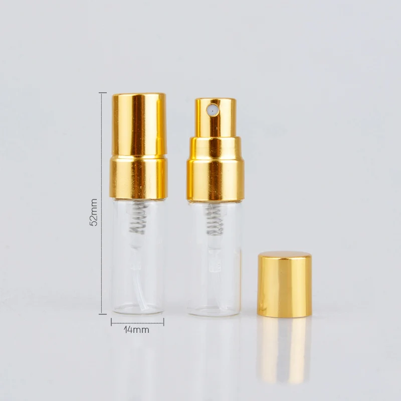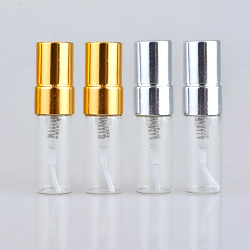 100 шт.лот 3 мл стеклянная многоразовая парфюмерная бутылка, пустая мини-бутылка с распылителем, алюминиевая парфюмерная емкость для дорожного насоса