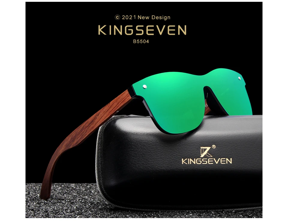 Солнцезащитные очки KINGSEVEN с деревянными зеркальными линзами для мужчин и женщин, Поляризационные солнечные аксессуары в стиле ретро без оправы, для вождения