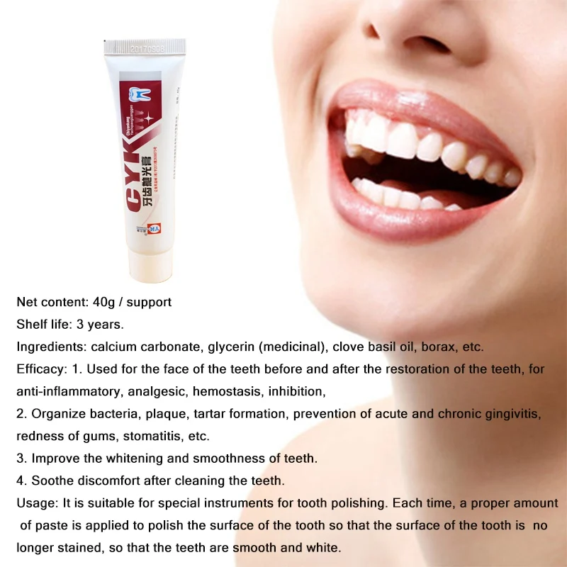 Паста для полировки зубов, 40 г, противовоспалительная, кровоостанавливающая, снимающая боль, отбеливающий крем для зубов