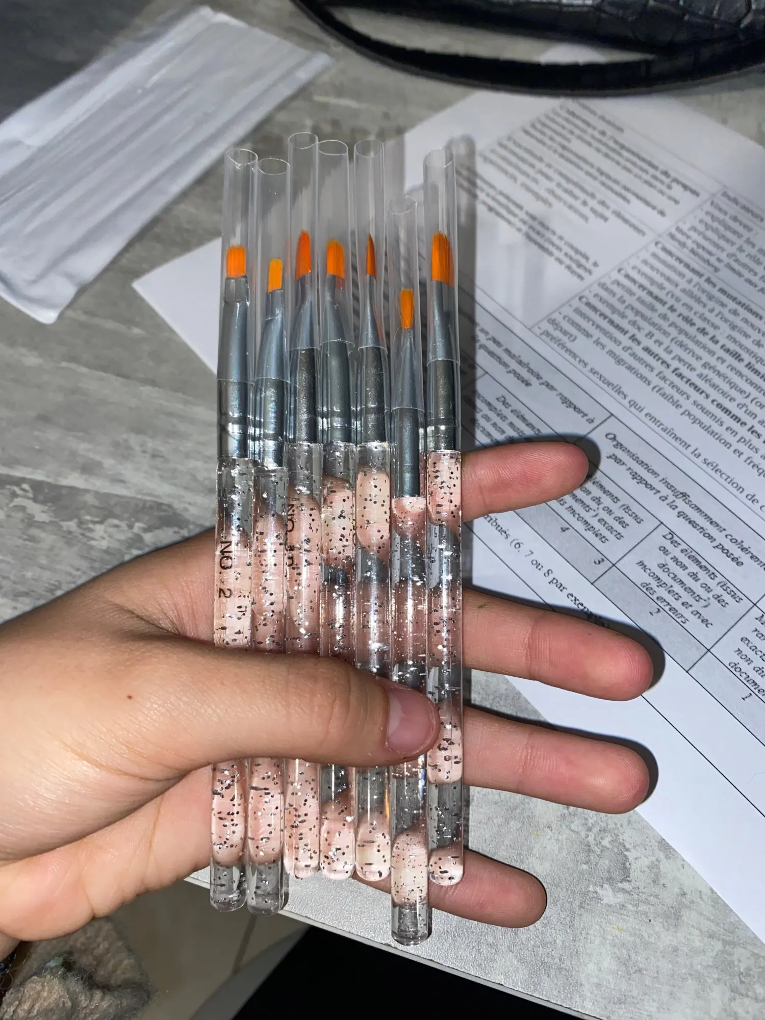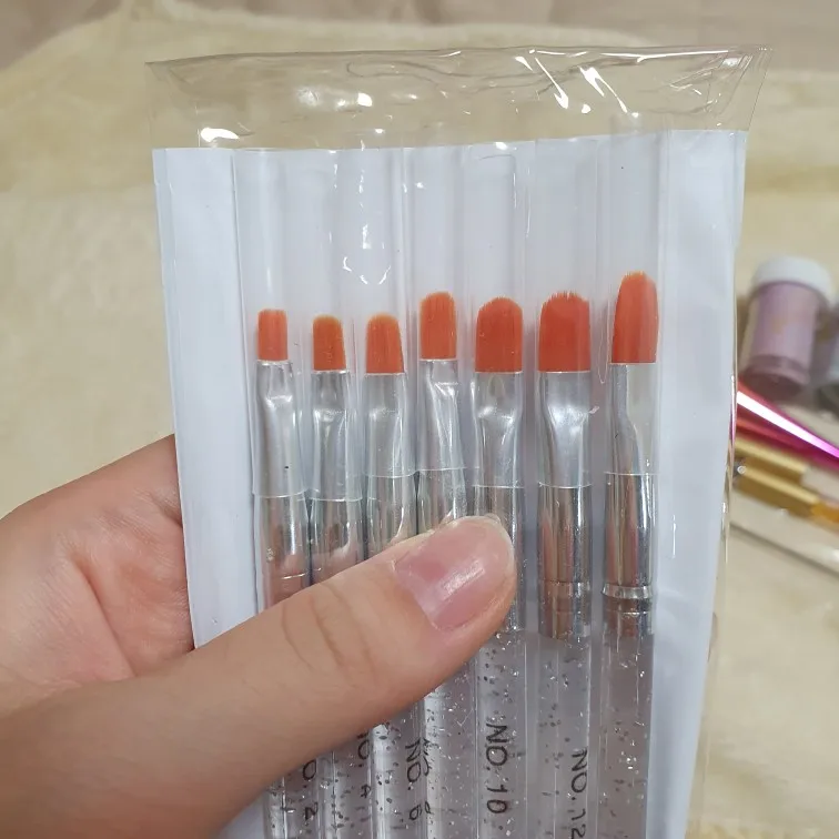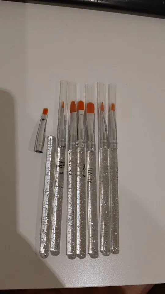 Очень хорошие и красивые кисти! Как в описании. Есть 7 кистей, они хорошо защищены пластиковым наконечником и вставлены в закрывающийся пластиковый конверт. Эти кисти идеально подходят для нанесения УФ-геля для маникюра. Они прибыли хорошо упакованы и в идеальном состоянии. Я помыл их, и они не потерялись. Доставка занимает 1 месяц и 9 дней для Канады. Я настоятельно рекомендую!