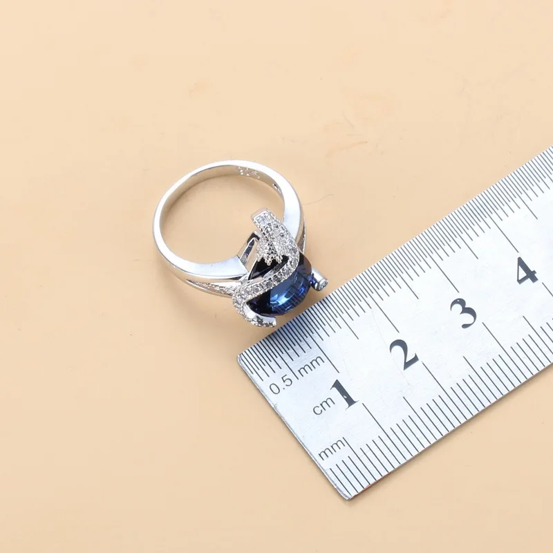Свадебные серебряные 925 Свадебные аксессуары женские синие кубичес...