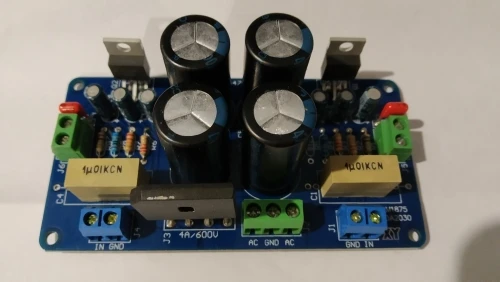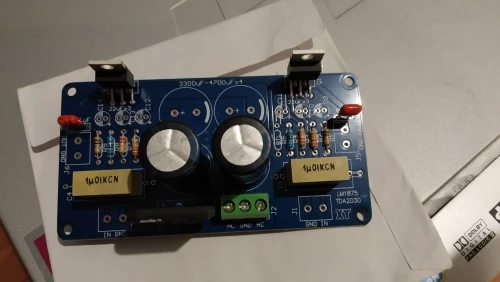 Собран с помощью TDA2050 amps. Хорошая печатная плата. Работает.