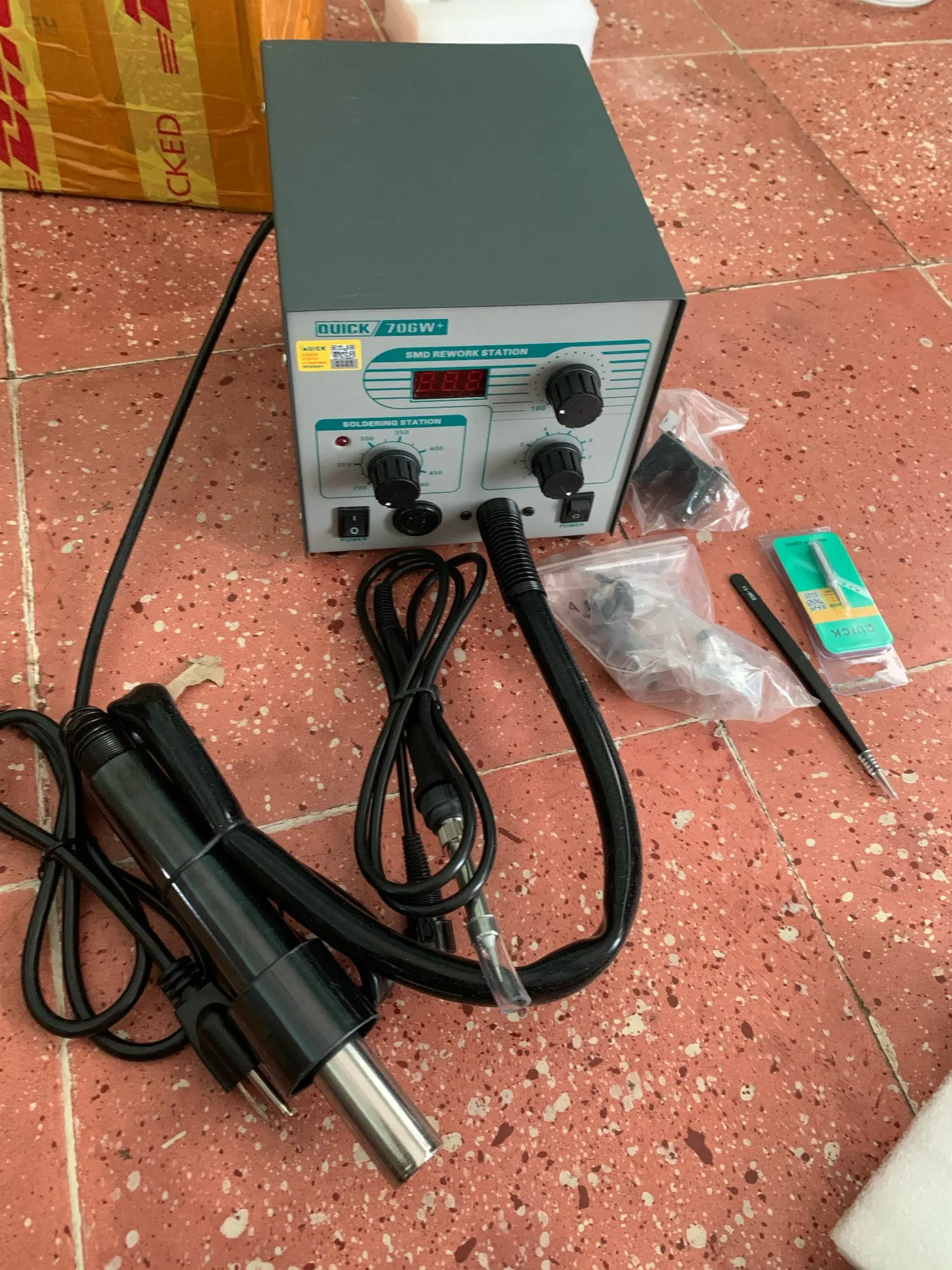Быстрая 706 Вт + Термовоздушная пушка с цифровым дисплеем + паяльник Антистатическая термостойкая Бессвинцовая ремонтная станция 2 в 1 с 3 насадками