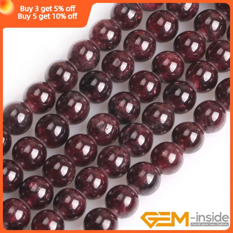 Круглые бусины из темно-красного граната, 15 дюймов, 6 мм, 8 мм, 10 мм