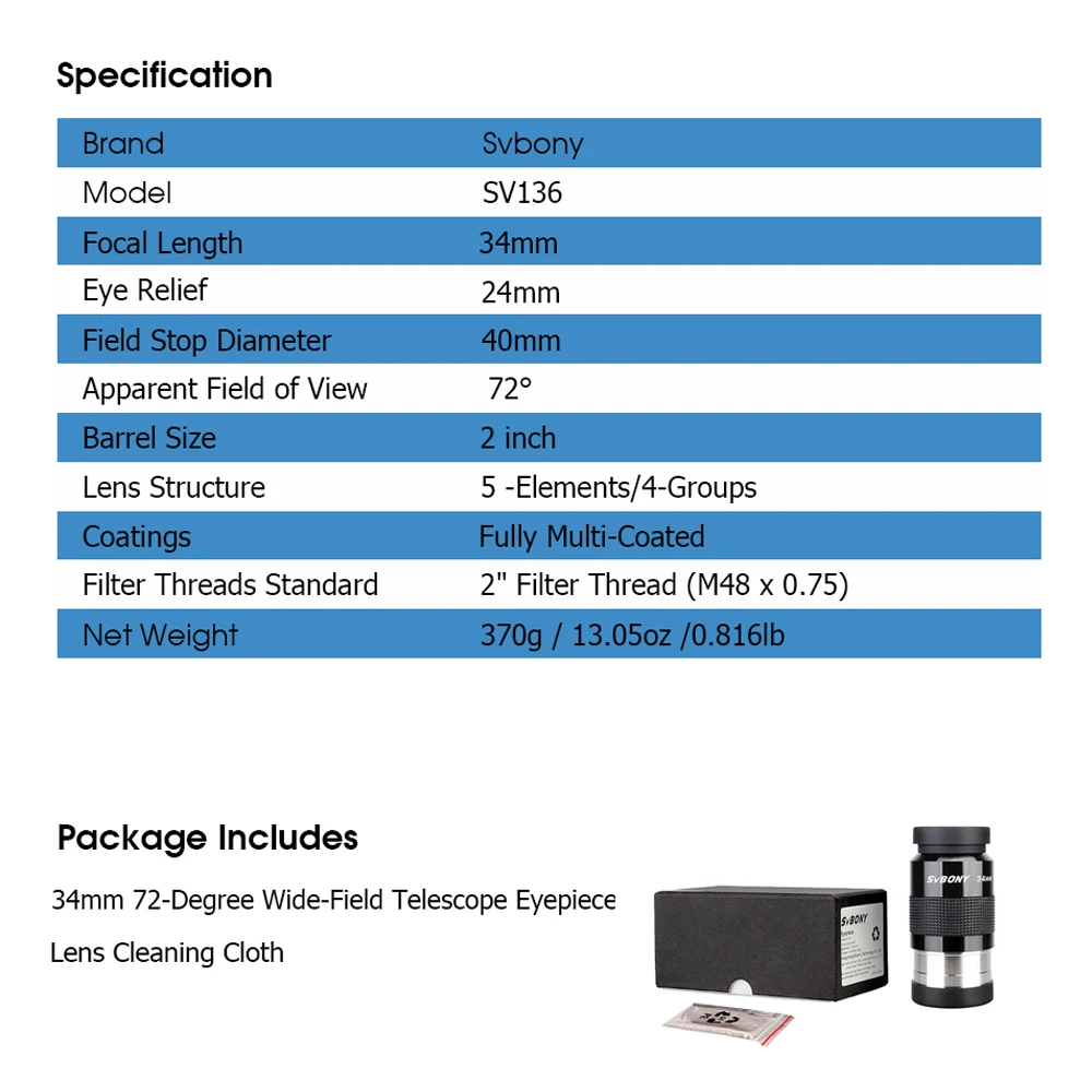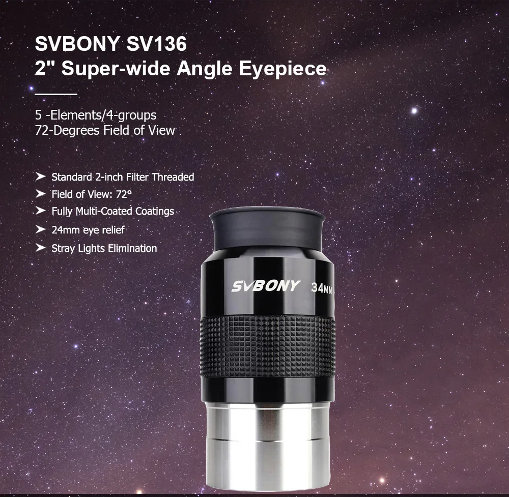 SVBONY Профессиональный астрономический телескоп 34 мм 2 "широкий угол 72 FMC асферический окуляр HD SV136
