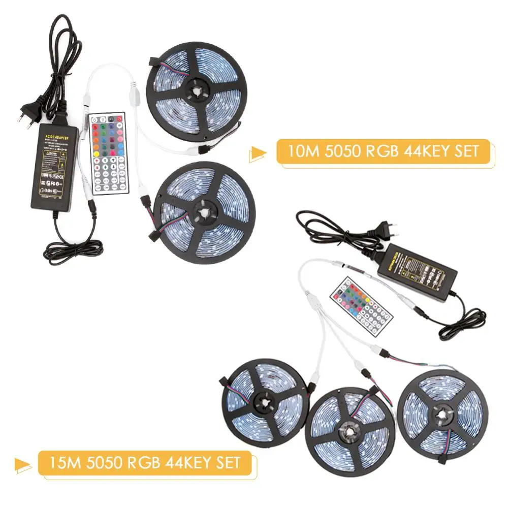 Светодиодная лента, гибкая Водонепроницаемая светящаяся лента с дистанционным управлением, RGB SMD 2835, 5050, 44 клавиши, 5 м, 10 м, 15 м, 12 В постоянного тока