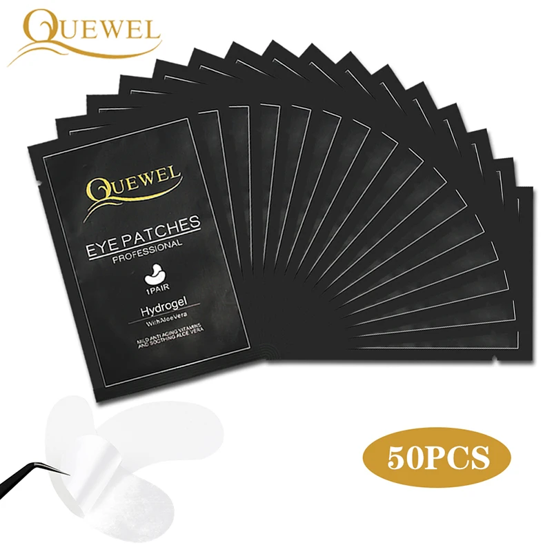 Патчи Quewel под глаза для накладных ресниц, 50 парупак., бумажные патчи для наращивания ресниц, наклейки для ресниц