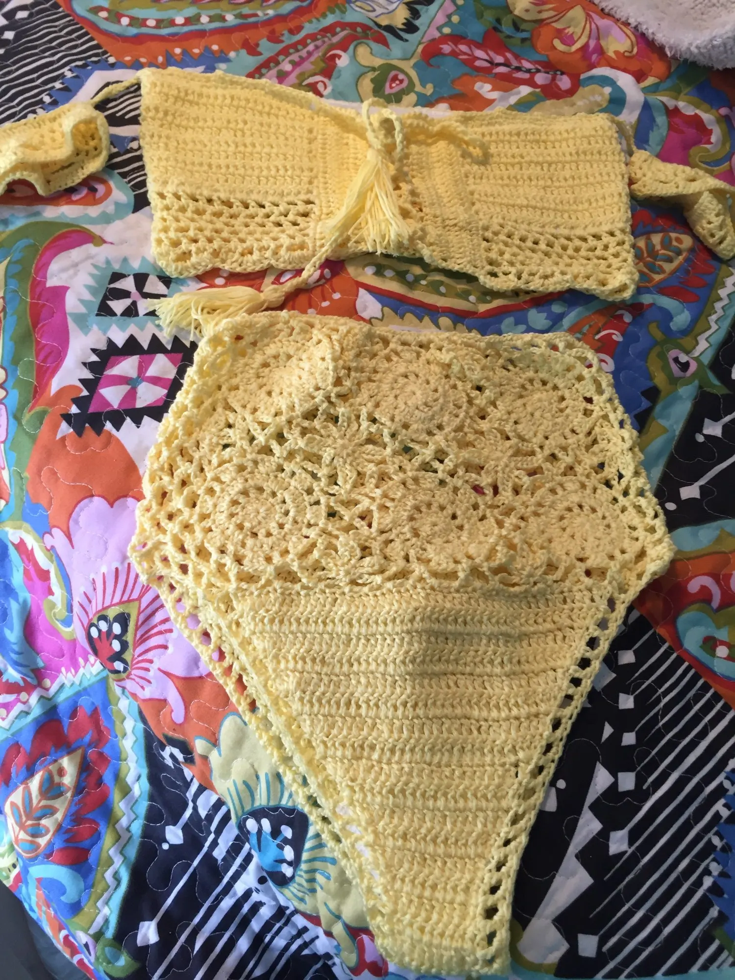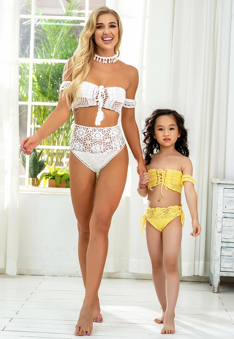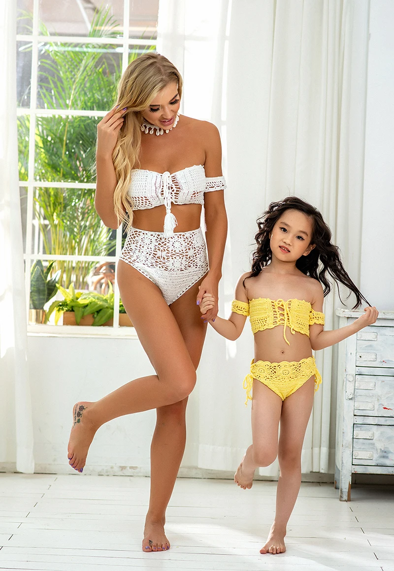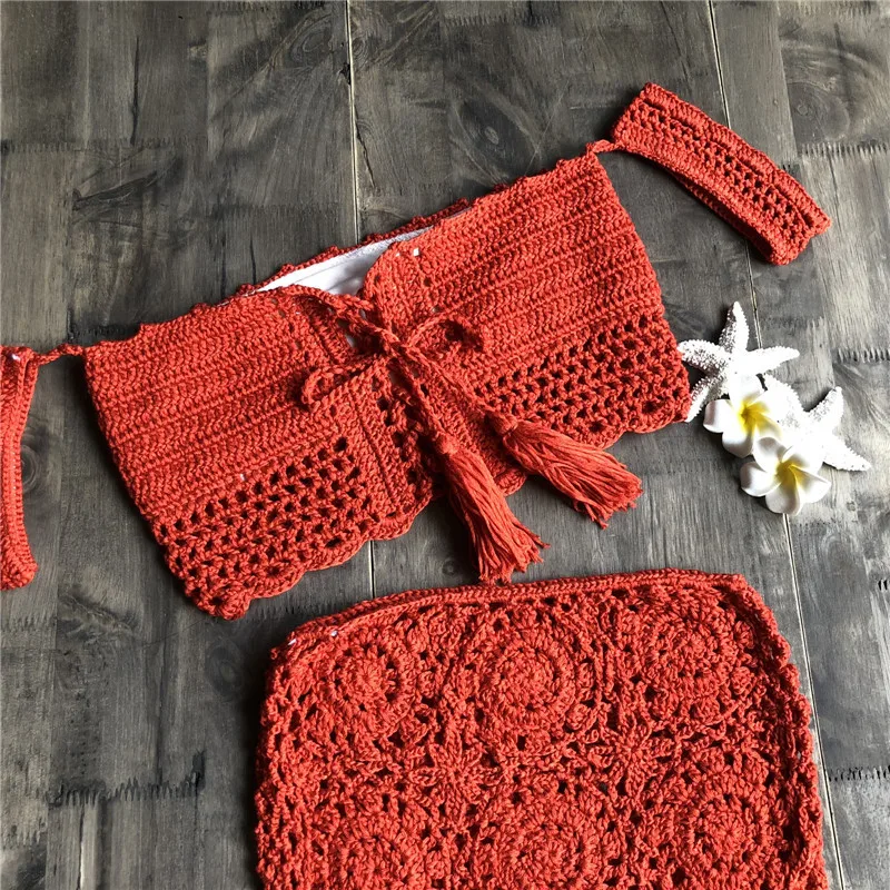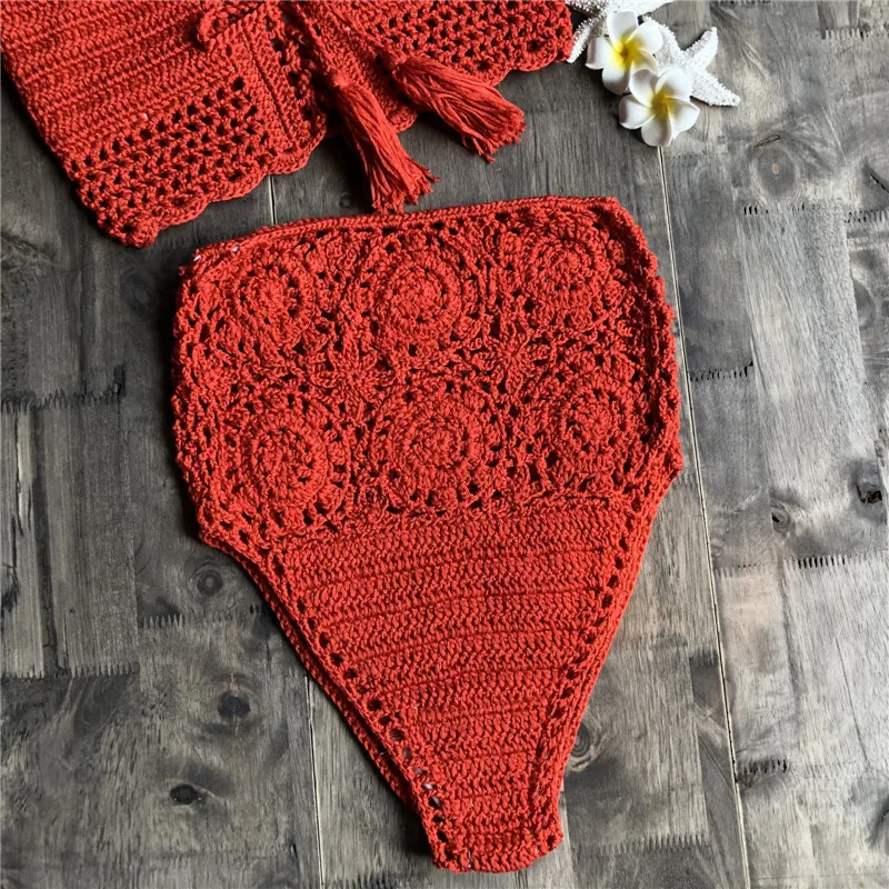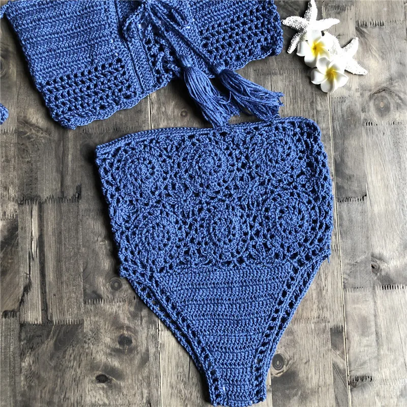 Вязаный крючком комплект бикини с высокими штанинами, женский купальник из двух частей, бикини с высокой талией, женский купальный костюм, бикини, новинка 2019