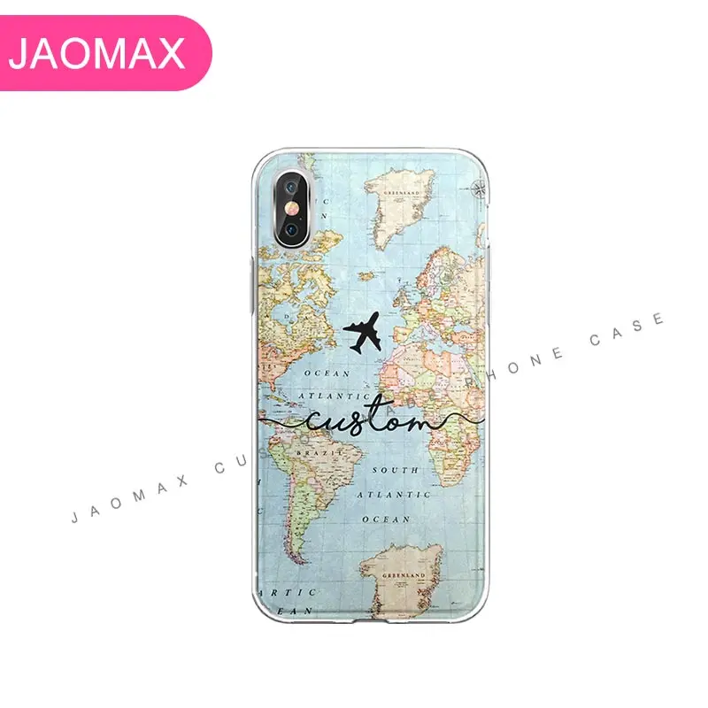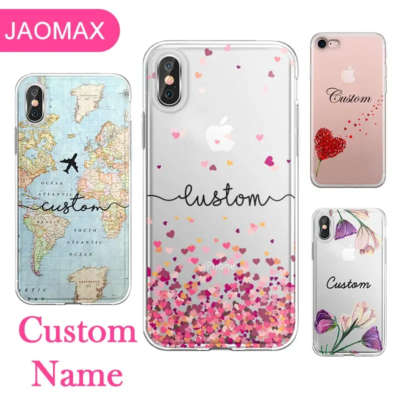 Персонализированный Чехол с именем на заказ с картой мира для iPhone 12, 11, 7Plus, Xs Max, SE 5s X, 8, 6s, Xr, прозрачный силиконовый чехол с цветами и сердцем