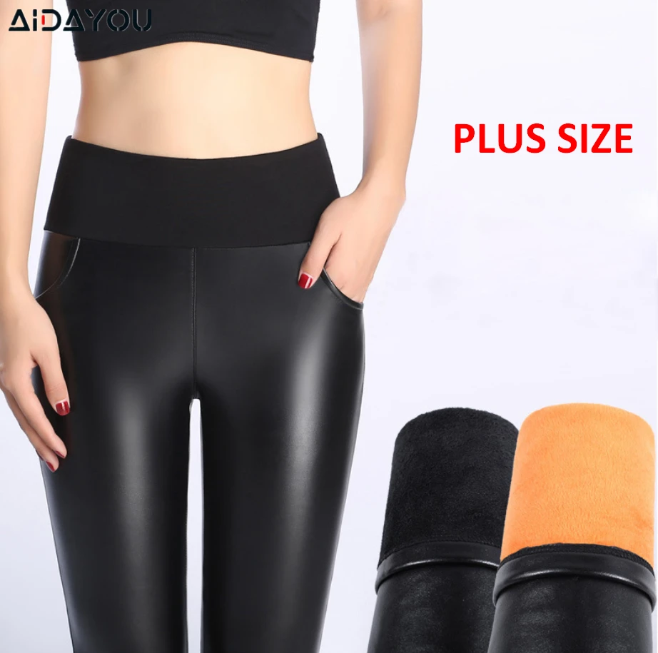 Леггинсы из искусственной кожи, с флисовой подкладкой, с высокой талией