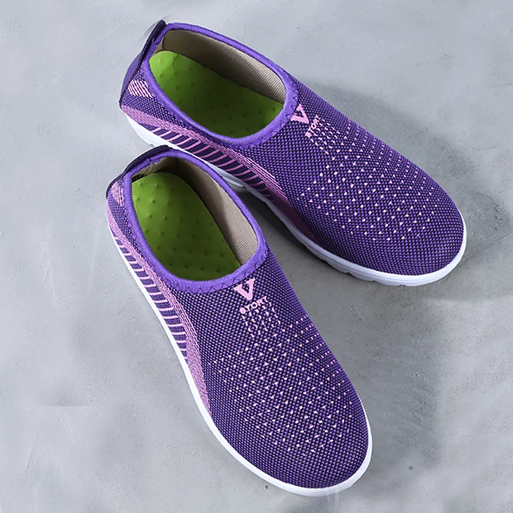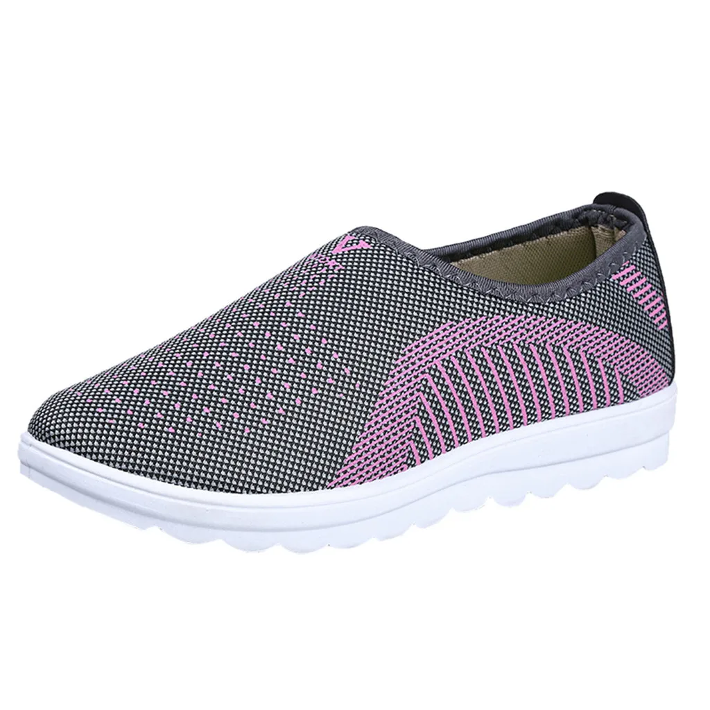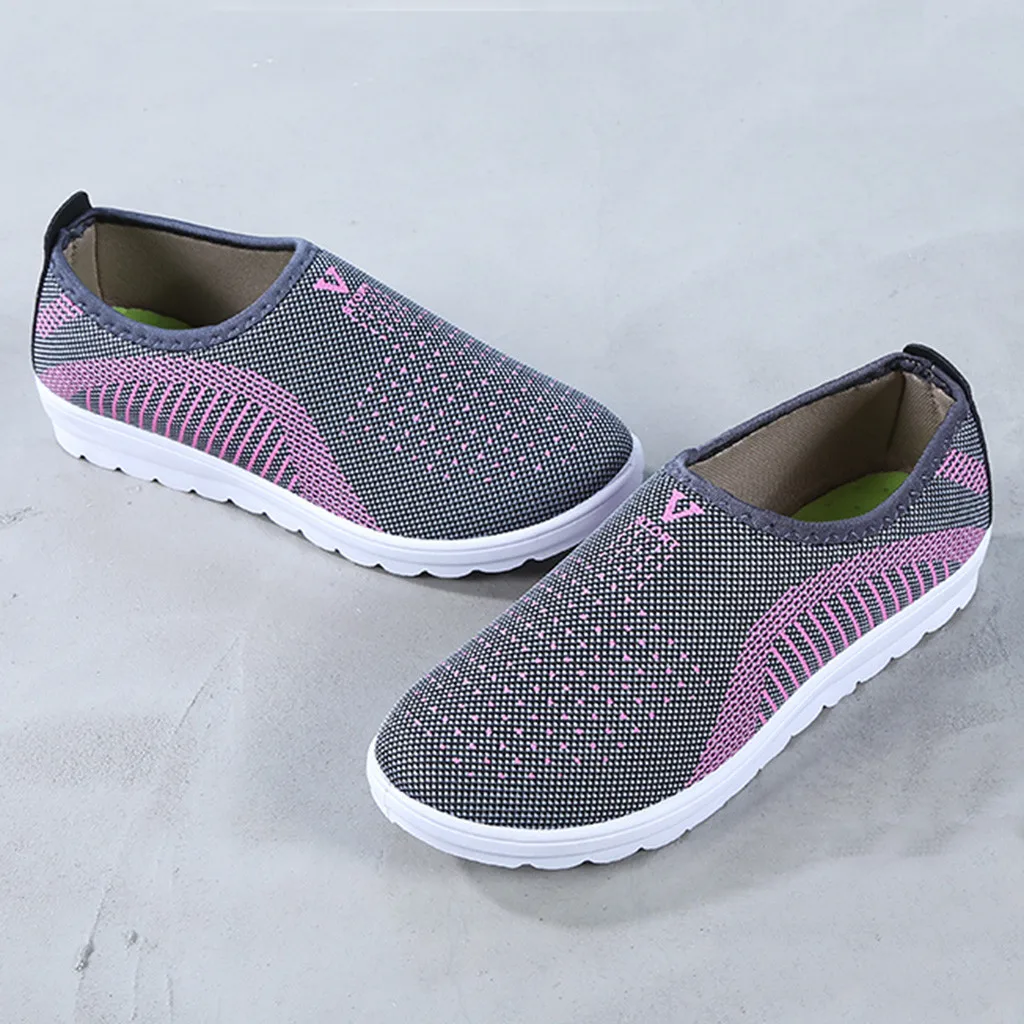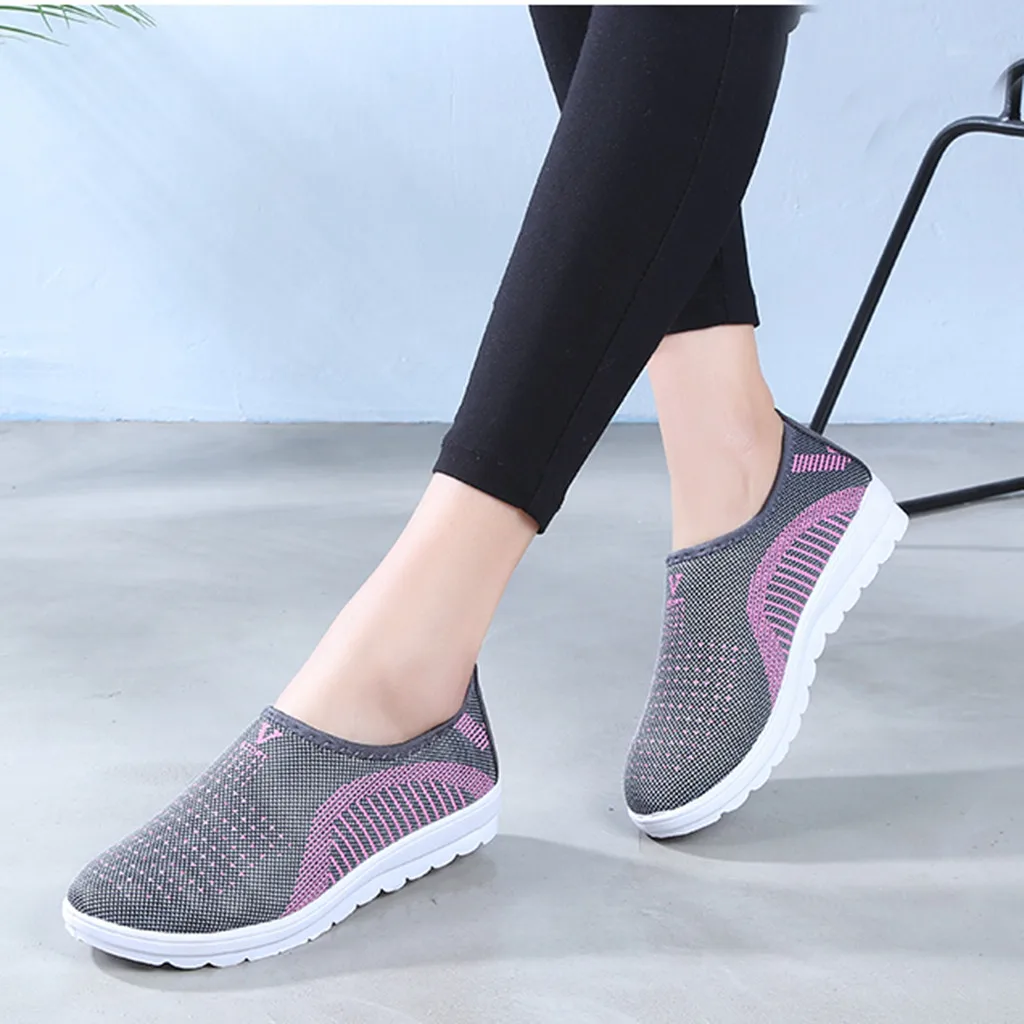 Женские сетчатые лоферы на плоской подошве, хлопковые повседневные сникеры в полоску для прогулок, мягкая обувь