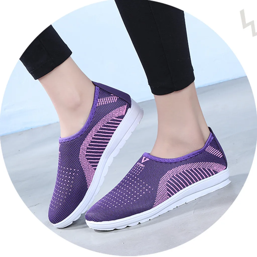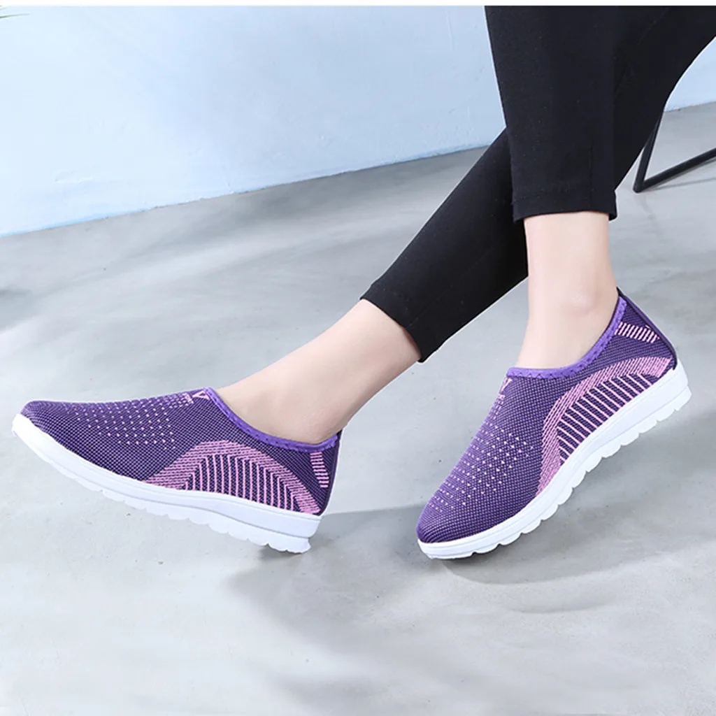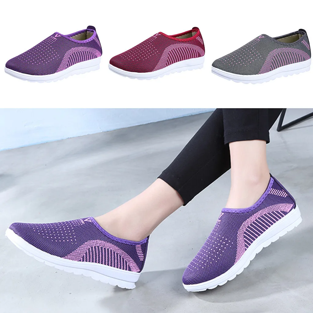 Женские кроссовки в полоску, модные сетчатые хлопчатобумажные повседневные сникеры в полоску, мягкие спортивные Прогулочные дышащие теннисные туфли, 2019