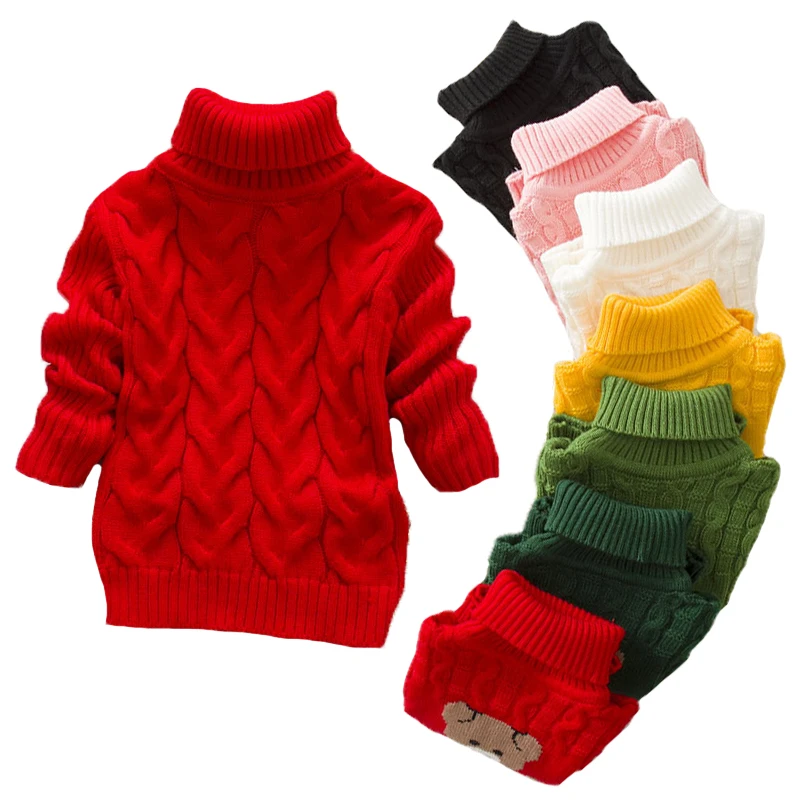 Свитер для девочек, зимний плотный вязаный джемпер с высоким воротником для мальчиков и девочек, однотонный пуловер с высоким воротником, свитер, одежда для детей