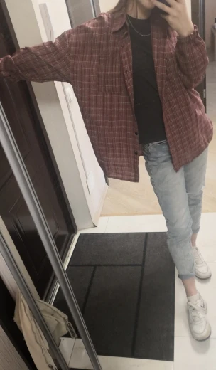 Рубашка классная, довольно тонкая, но это нельзя назвать минусом, потому что я рассчитывала на неё как на вещь, которую можно надевать поверх чего-то. Шла около двух недель, на российский S брала L- сел как большой такой оверсайз. Возможно, кому-то будет казаться, что слишком большая, но мне кажется, что в самый раз. На рост 170 рукава сели в самый раз, даже немного больше, чем нужно.