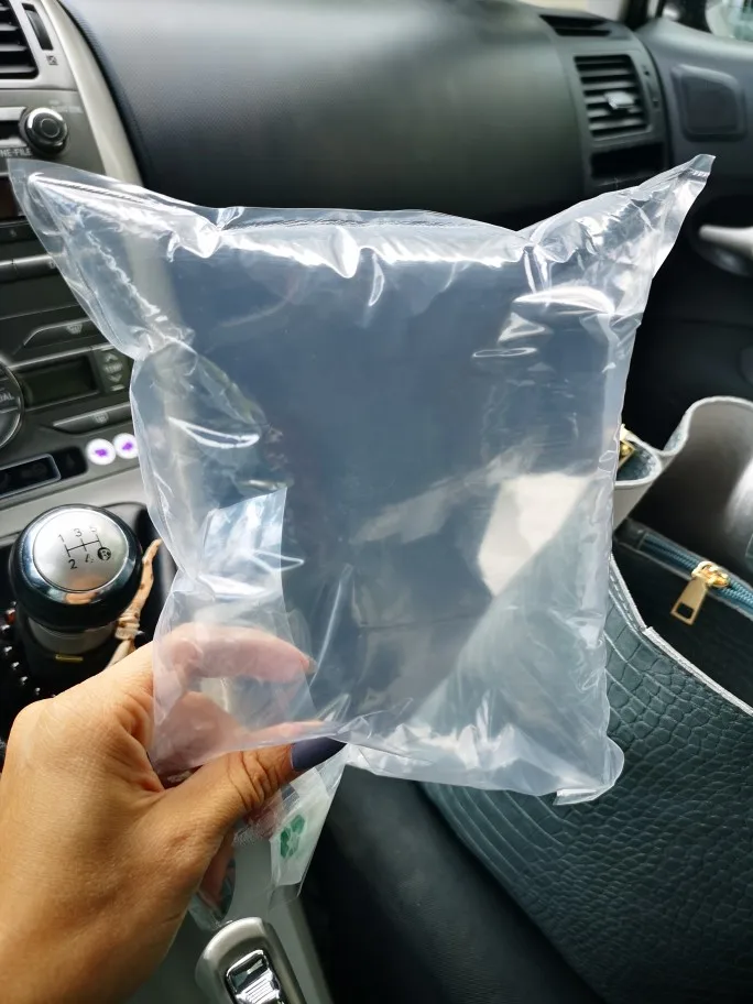товар пришел оч быстро! сумочка очень симпатичная. Внутри пакеты с воздухом. Только чуть сверху примяллась Есть немного запах.