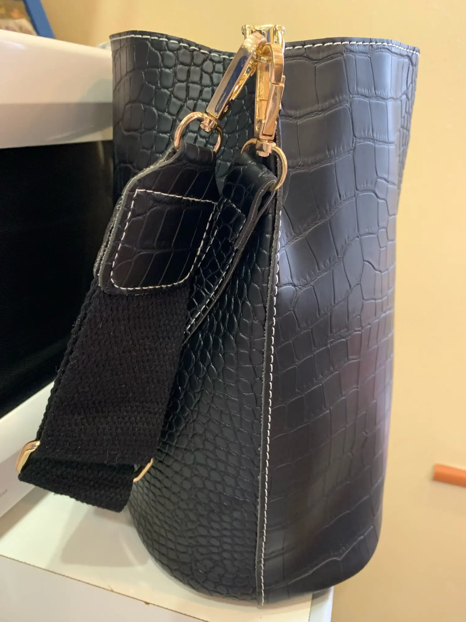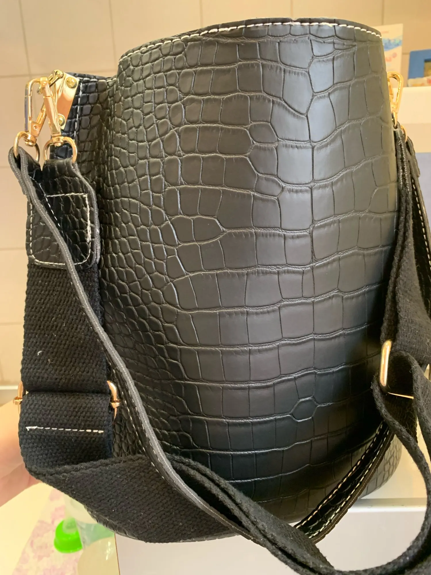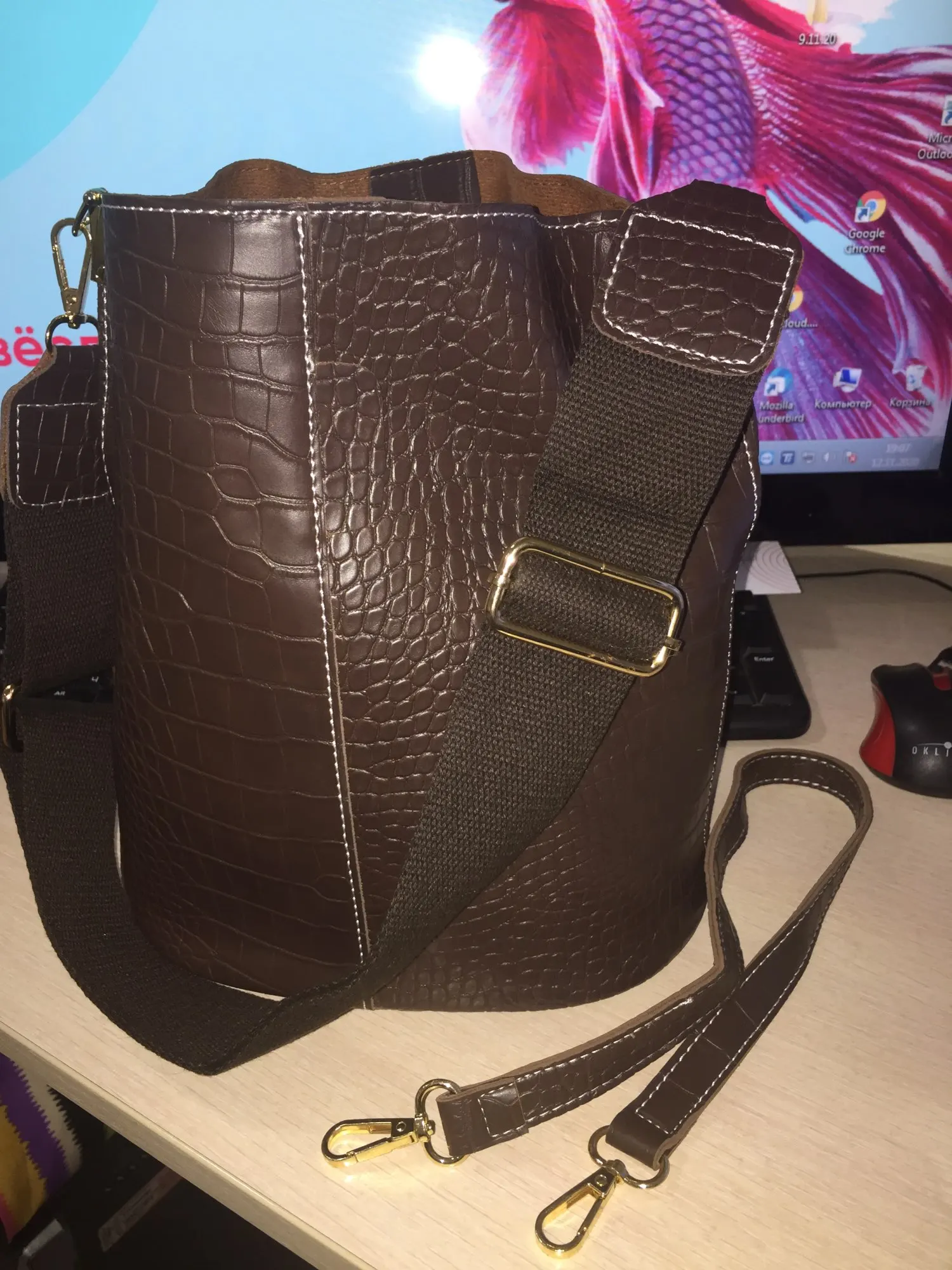 супер сумка!!! именно такую сумку я искала. стильная, достаточно качественно выглядит да и на ощупь приятная. два ремня в комплекте, но я пользуюсь только короткой, уже и пальто приобрела к этой сумке. заказывайте даже не сомневайтесь. положили маленький подарок, мелочь , а приятно , маленький брелок "панда".