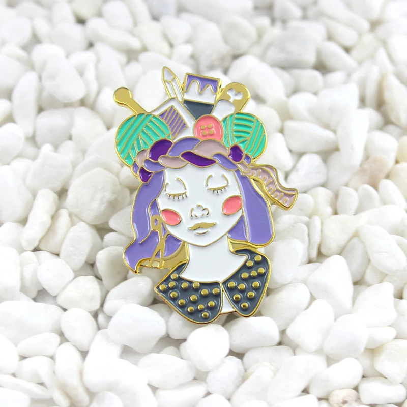 Булавка из шерсти для девушек на голове Craft Queen, забавная и блестящая вязаная булавка для джинсового рюкзака