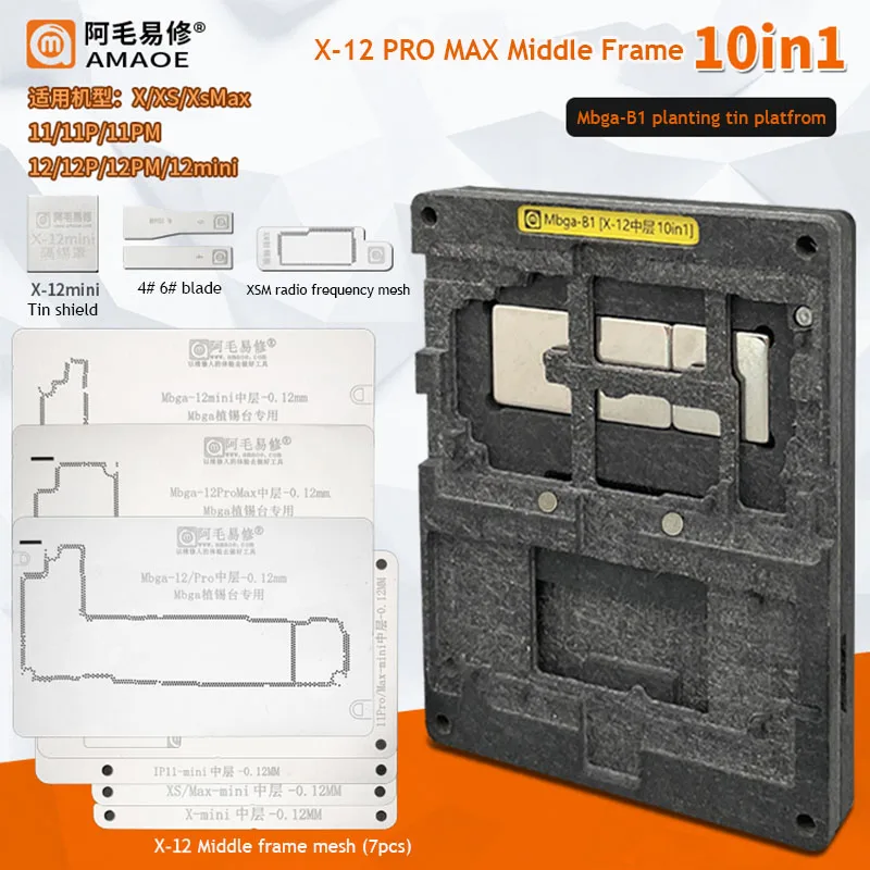 Amaoe 10 в 1 BGA реболлинг трафарет на платформе для iPhone X-12 Pro max материнская плата для средней рамки посадка олова крепление шаблона