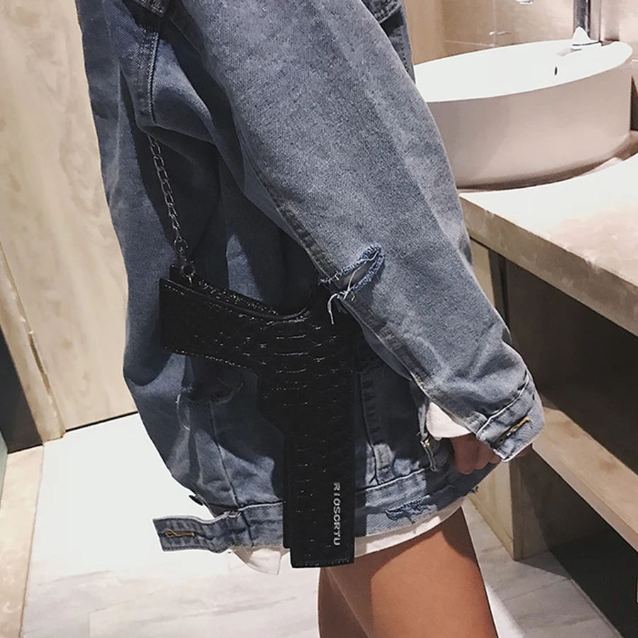 Женская мини сумка-мессенджер в форме пистолета Harajuku из искусственной кожи, сумки через плечо для женщин с цепочками, вечерняя сумка Bolsa Girl, однотонная маленькая сумка с клапаном