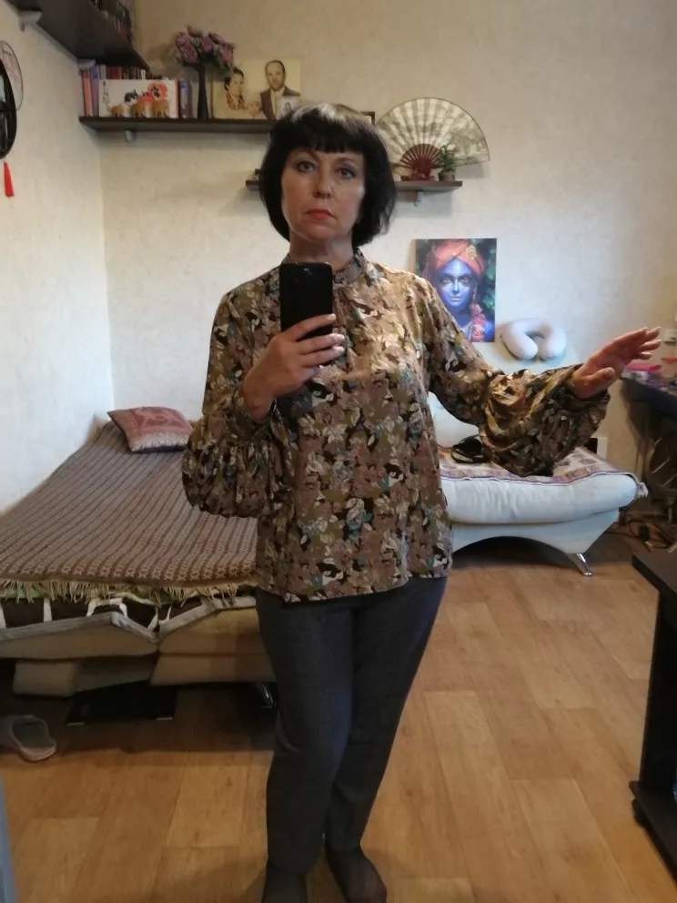 Около месяца была в дороге, с момента заказа. Пришла по почте Блузка мне очень понравилась, села как влитая. На осень в самый раз. И даже длина рукава то что нужно. Это очень редко со мной бывает, так как рост у меня 157см. Особенную изюминку придают рукава - очень красиво смотрятся. Изнутри поддерживает подкладом, чтоб не падали. Застежка на спине - замок Есть конечно грешки, по пошиве. И хоть нитки торчат кое где, да и не в цвет ткани они, блузка классная Продавцу большое спасибо.
