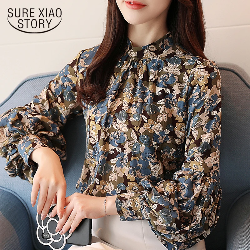 Модные женские блузки 2019 принт шифоновая блузка женские рубашки-топы и блузки Длинные женские рукава рубашки femininas 2078 50