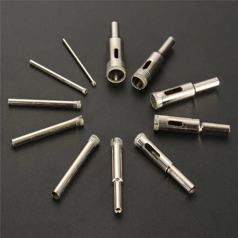 11 шт. алмазное кольцевое сверло с алмазным покрытием, набор инструментов для плитки, мраморное стекло, ассортимент 3-14 мм