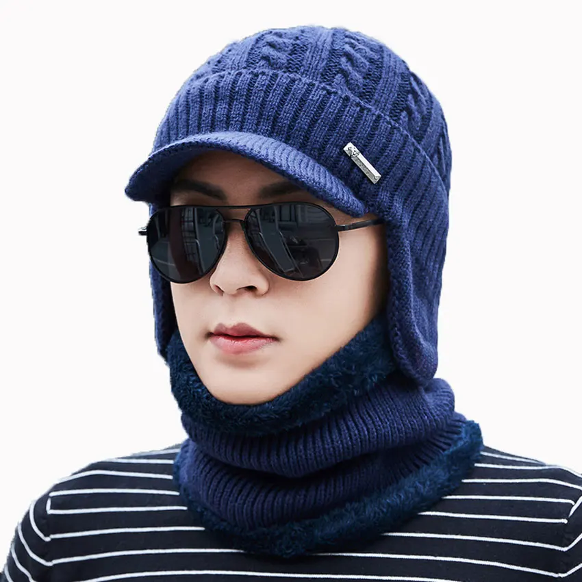 Шапка и шарф мужские зимние вязаные с козырьком и козырьком