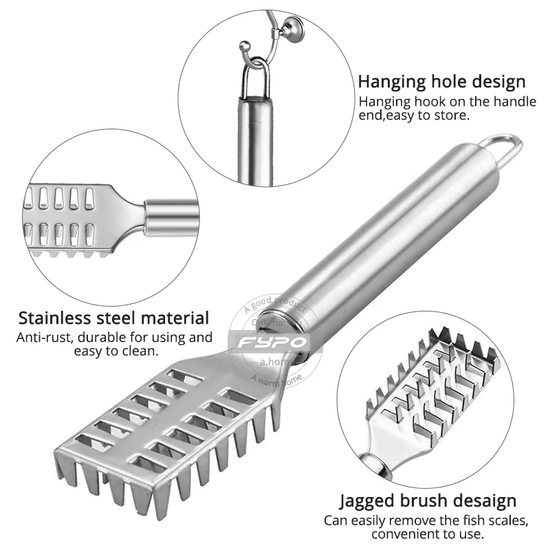 2.Дизайн зубчатой щетки, легко удаляет чешую рыбы, удобен в использовании.