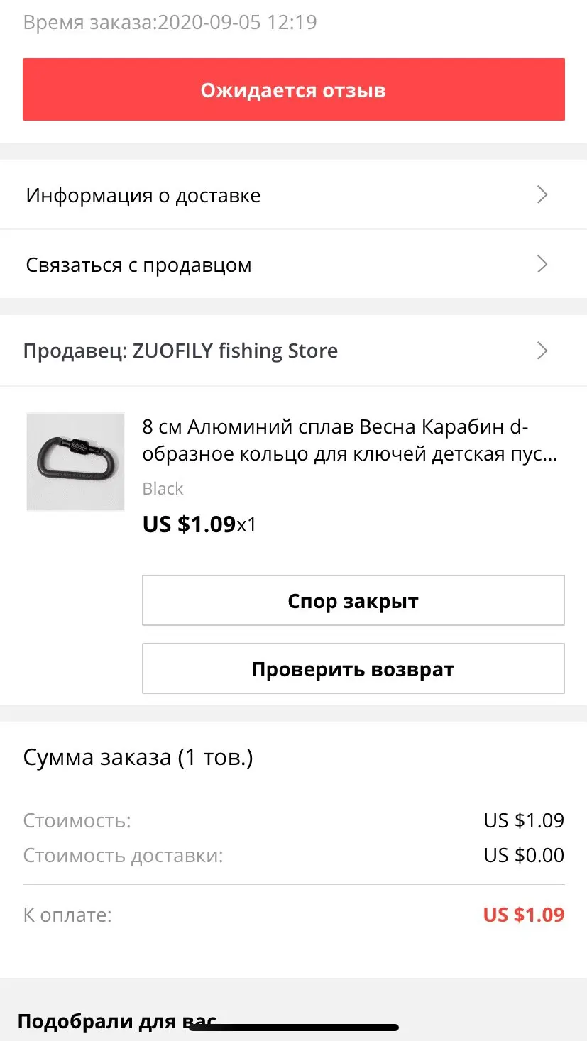 Заказывал карабин на рюкзак, продавец общительный и выслал заказ сразу, но к сожалению посылка ещё в пути. Продовец продлил срок защиты покупателя, но и он уже закончился, поэтому я открыл спор и Алиэкспрес вернул мне деньги. Возможно это задержка на таможне.