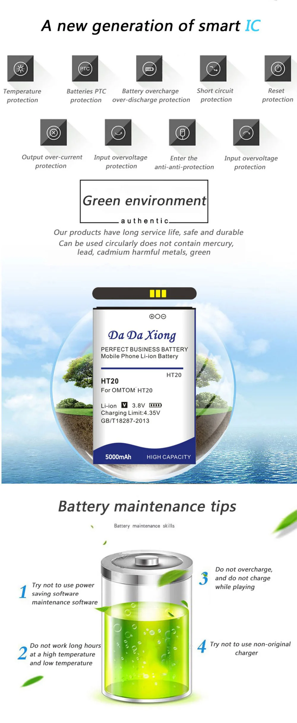 2020 DaDaXiong, новый оригинальный аккумулятор 5000 мА ч дляHOMTOM HT20 Pro