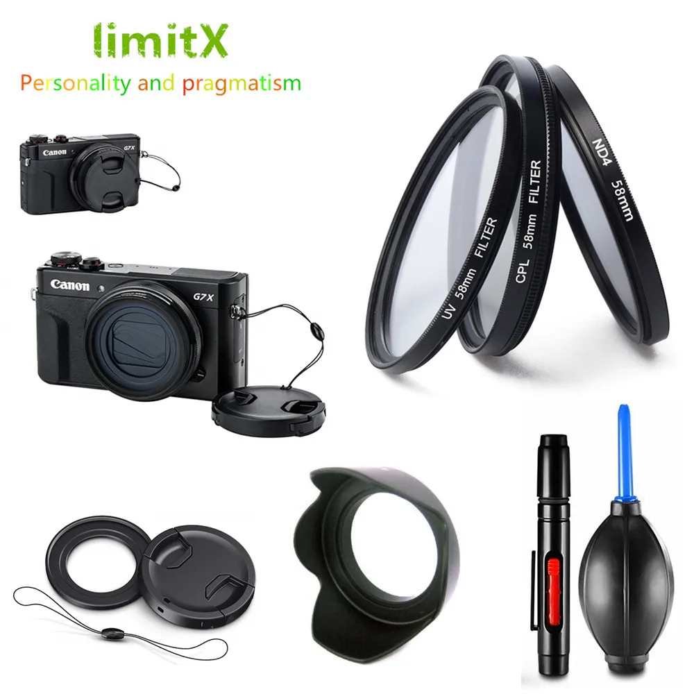 Набор фильтров UV CPL ND, кольцо-адаптер и металлическая крышка объектива, резиновая ручка для очистки воздуха, воздуходувка для камеры Canon G5X G7X Mark III II