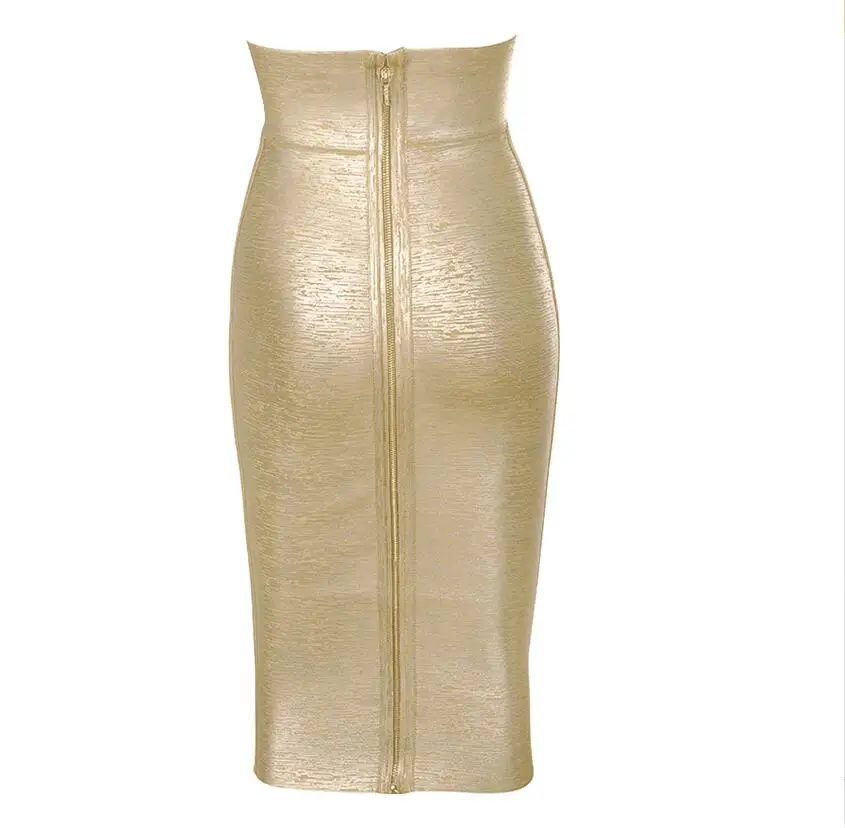 Новинка, женские сексуальные золотистые вискозные бандажные юбки 2021, трикотажные Дизайнерские юбки знаменитости, 60 см