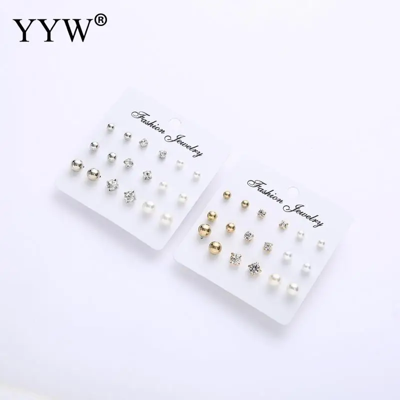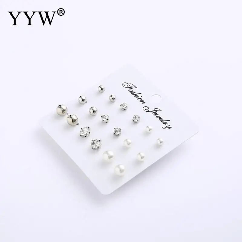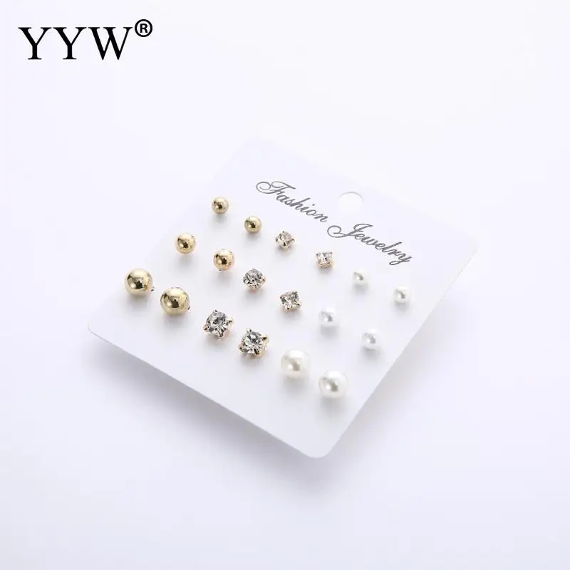 Модные сережки-гвоздики с кристаллами и искусственным жемчугом, 9 паруп. блестящие сережки, ювелирные изделия для женщин и девочек, оптовая продажа