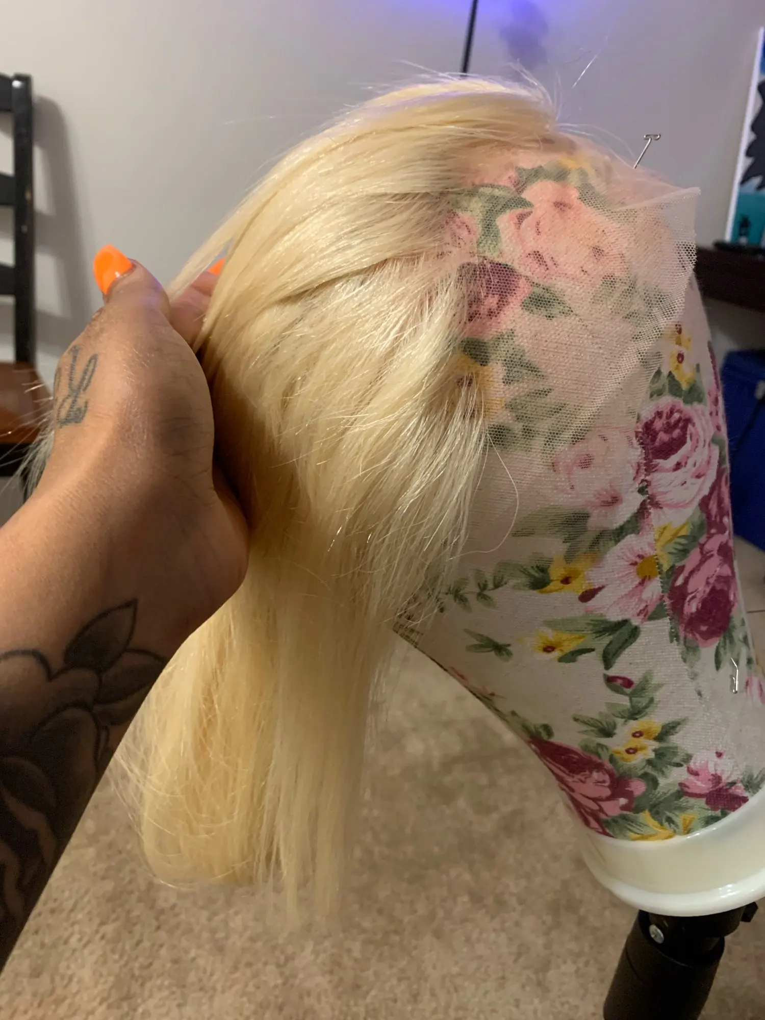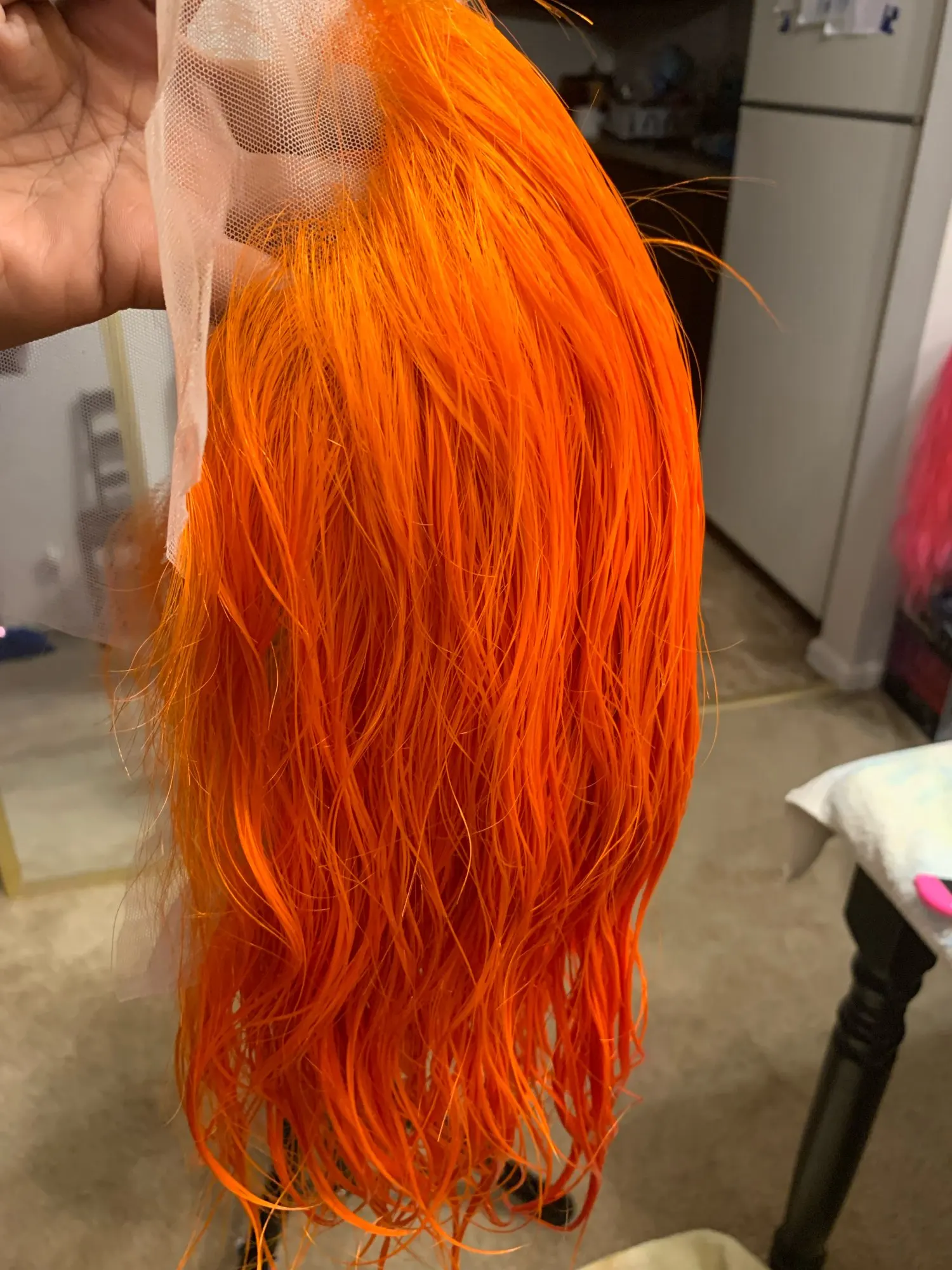 No complaints on this wig came really fast it’s just a simple wig for someone whose not trying to spend a lot of money. Or someone who just want a quick hairstyle I colored the hair mint color