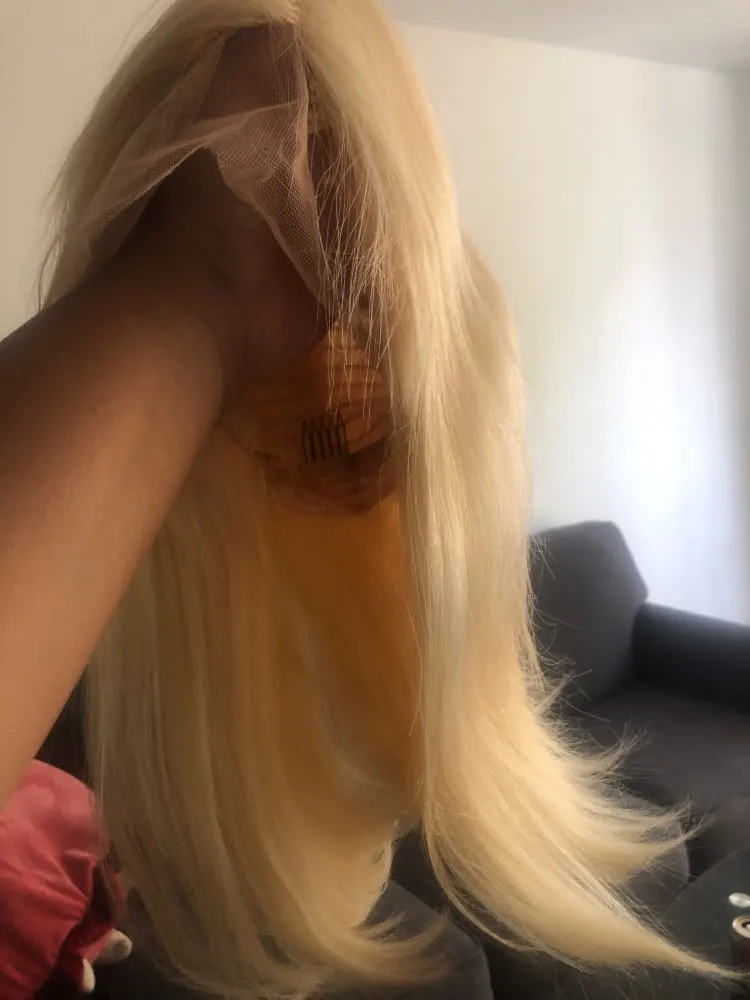 Я увидел плохой отзыв о том, что вижу следы и слишком тонкий, но мне очень понравился этот парик, и это был мой первый парик из человеческих волос Блонд. Я буду заказывать снова и это определенно человеческие волосы... Он отлично ломается, когда мокрый пришел в течение 3 дней, а не 7, у меня не было запаха, я скоро покраслю его и оставлю еще один отзыв, пока эта девочка-волосяная