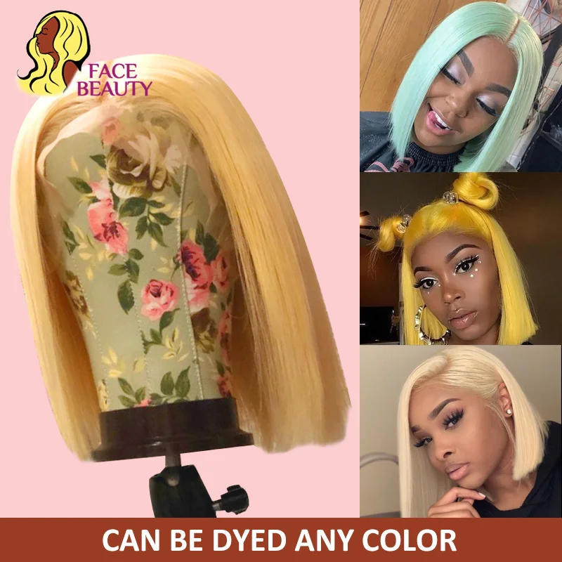 Парик Боб из натуральных прямых бразильских волос, 13x4, 1B, 613, с эффектом деграде, Короткие парики для чернокожих женщин