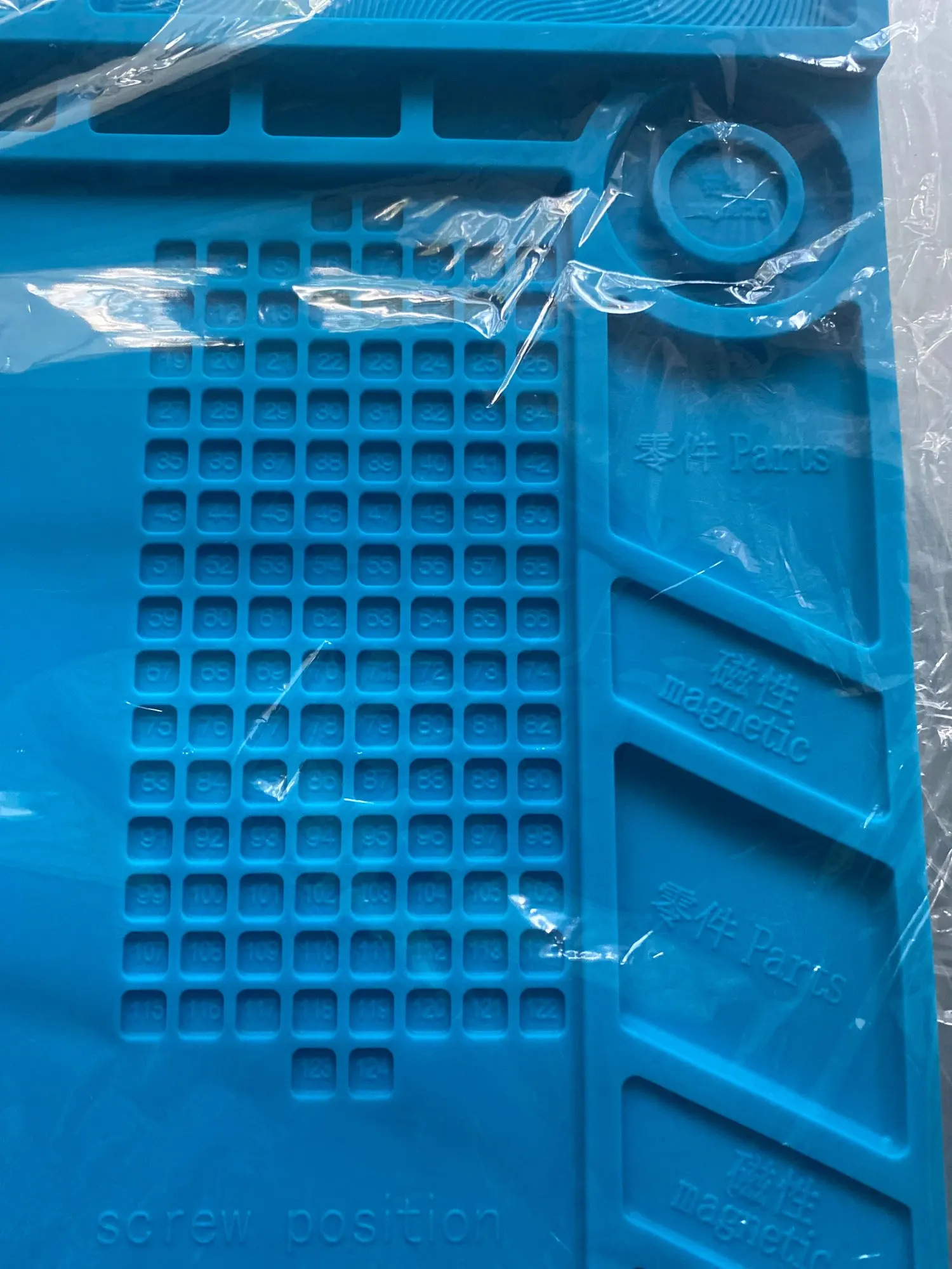 отличный коврик из толстого силикона. теперь можно рассортировать винты и прочую мелочь. магниты слабые, крышки на отсеках не держатся открываются