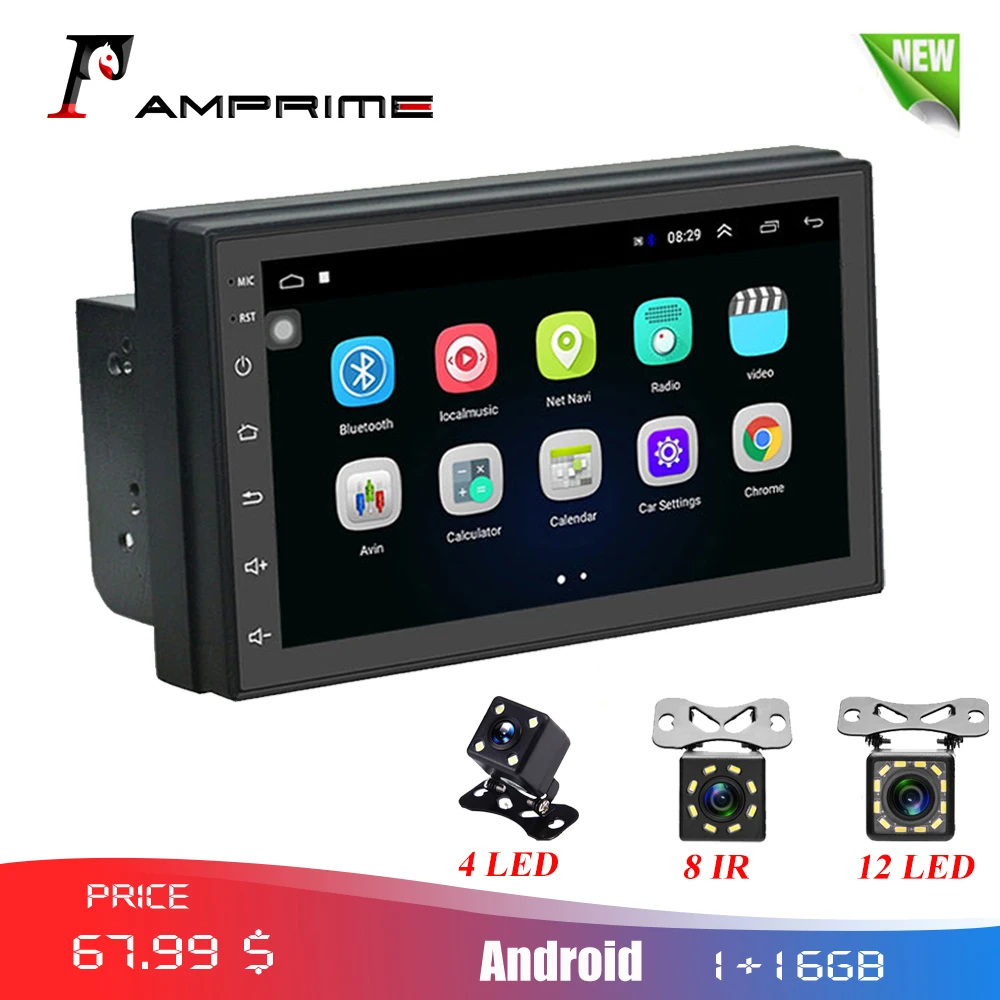Автомагнитола AMPrime 2 Din, мультимедийный MP5 плеер на Android, с 7 "сенсорным экраном, GPS, Bluetooth, FM, Wi-Fi, Mirror link