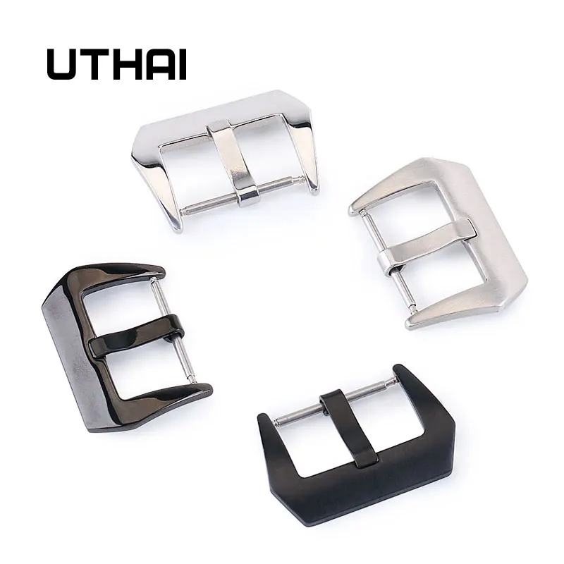 UTHAI T06 металлическая пряжка для часов 18-26 мм мужской ремешок для часов серебристо-черный матовый 316L нержавеющая сталь застежка аксессуары