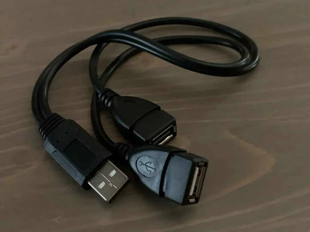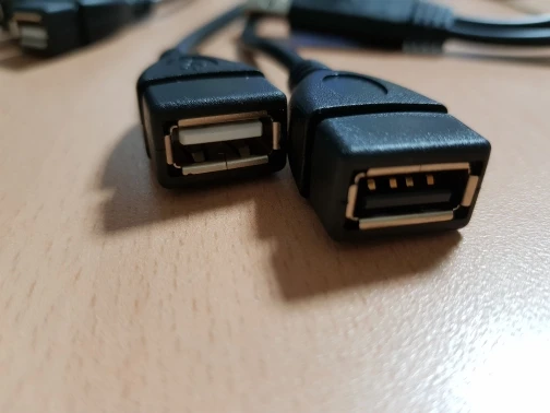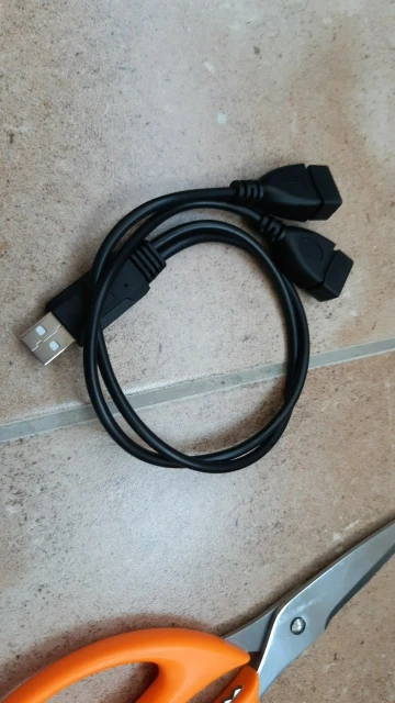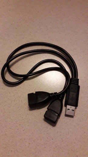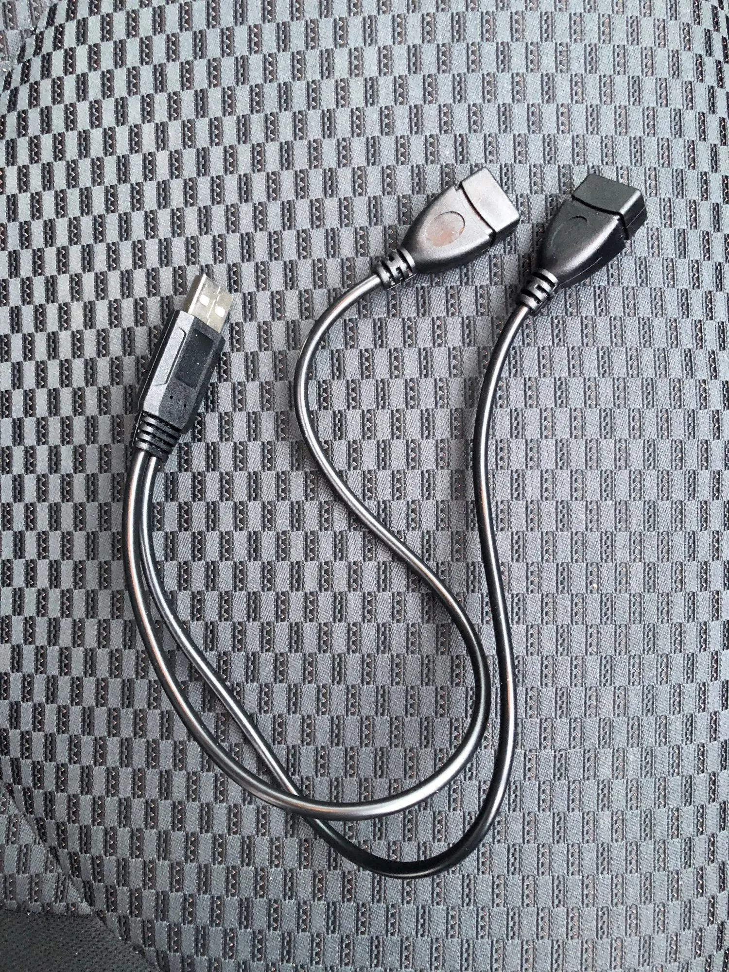 Всё как в описании. Один хвост полноценный USB, а второй хвост USB питание. То что я искал!