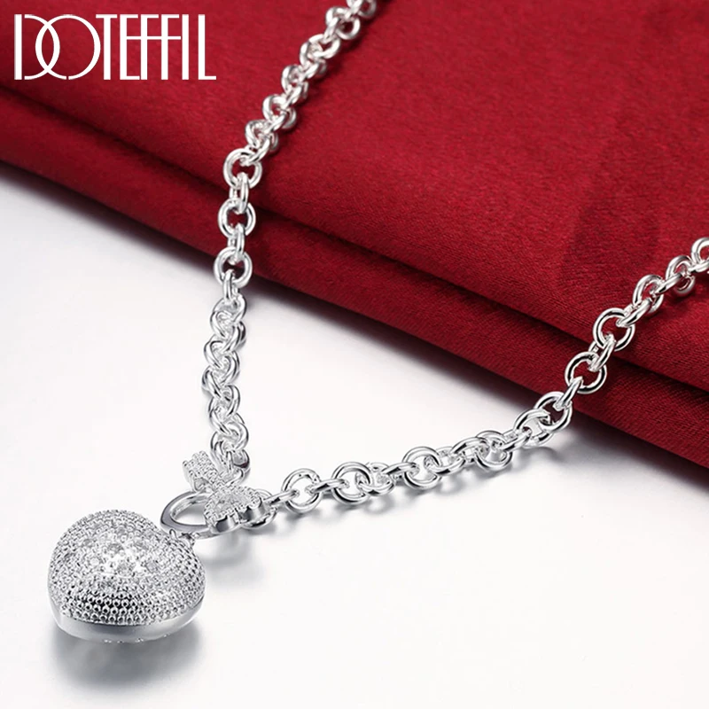Цепочка DOTEFFIL из стерлингового серебра 925 пробы, 18 дюймов, кулон в виде сердца из циркония ААА для женщин, очаровательное свадебное обручальное украшение
