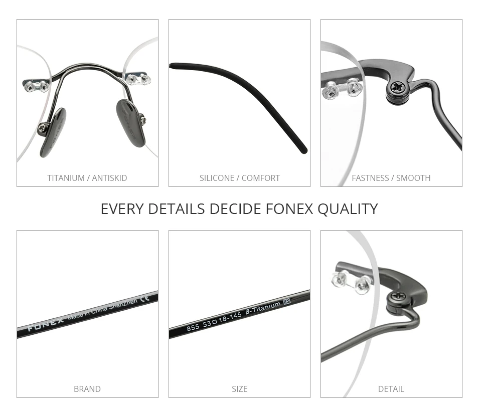 FONEX Титановые очки без оправы B для женщин и мужчин, оправа для очков по рецепту для близорукости, новые винтажные овальные очки 855