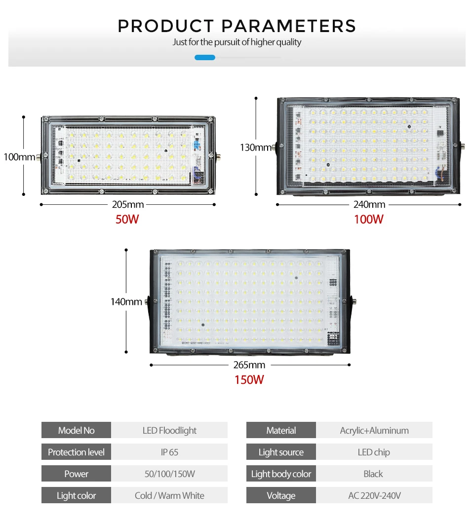 Прожексветильник светодиодный, 150 Вт, 100 Вт, 50 Вт, 220 В переменного тока, водонепроницаемый, Ip65, для улицы, сада