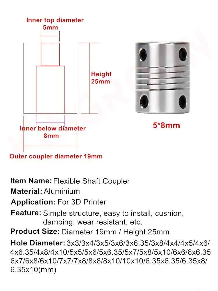 Гибкий гравировальный станок с ЧПУ D19xL25, алюминиевые шаговые Соединительная муфта подвижной щеки дробилки 5 8 6,35 мм 7 мм 8 мм 10 мм