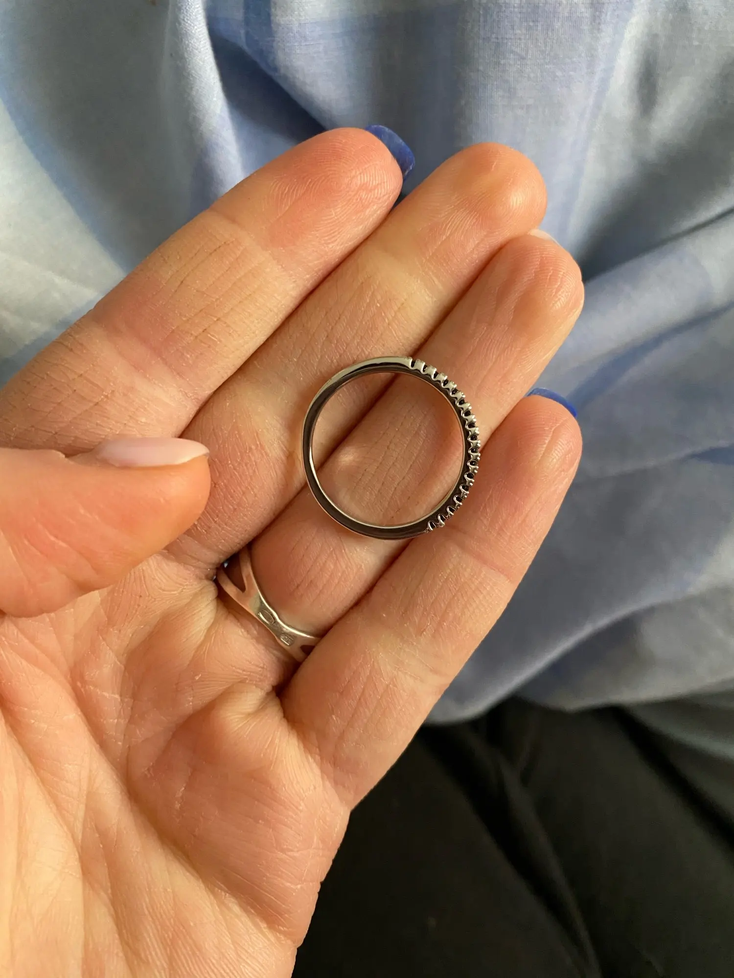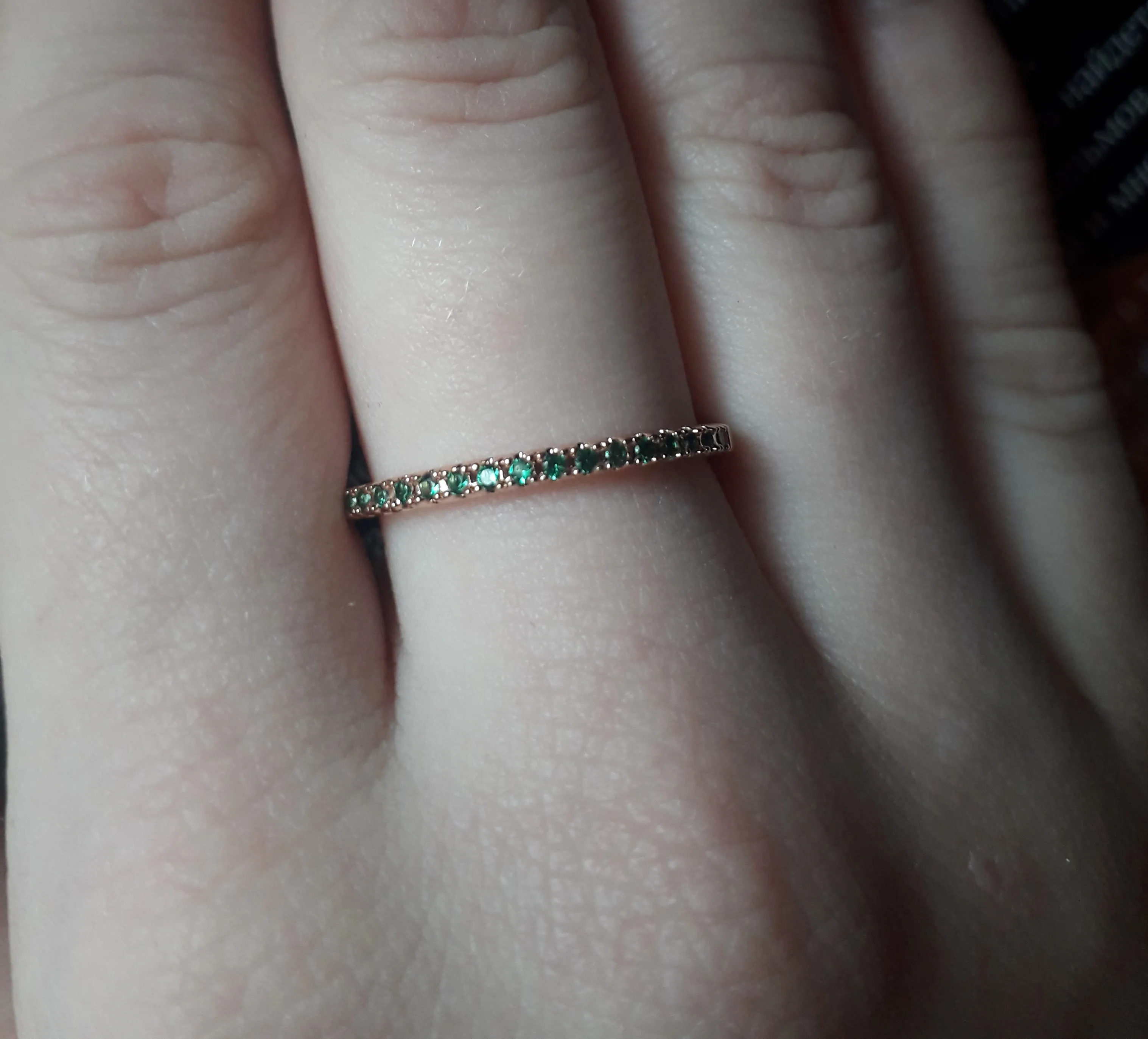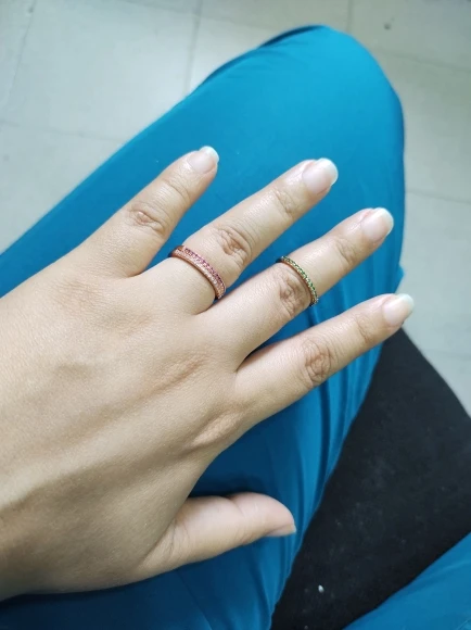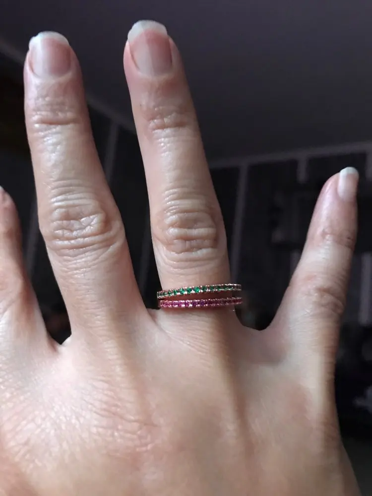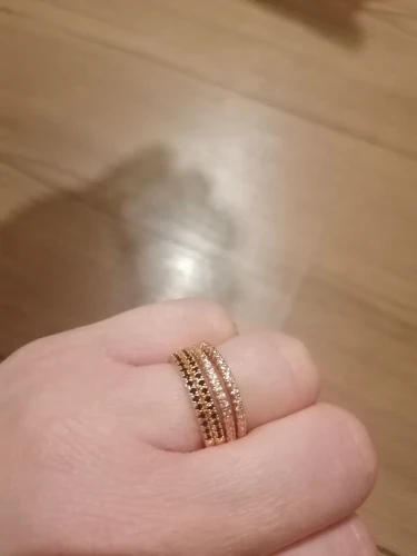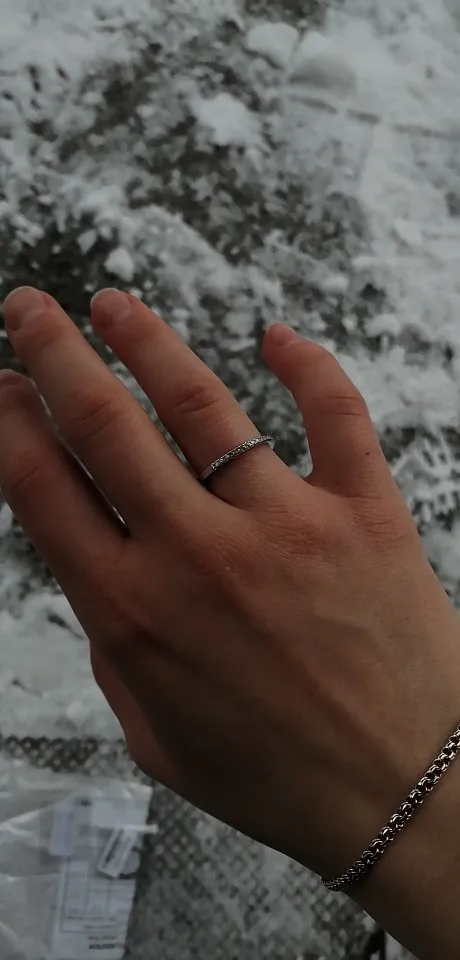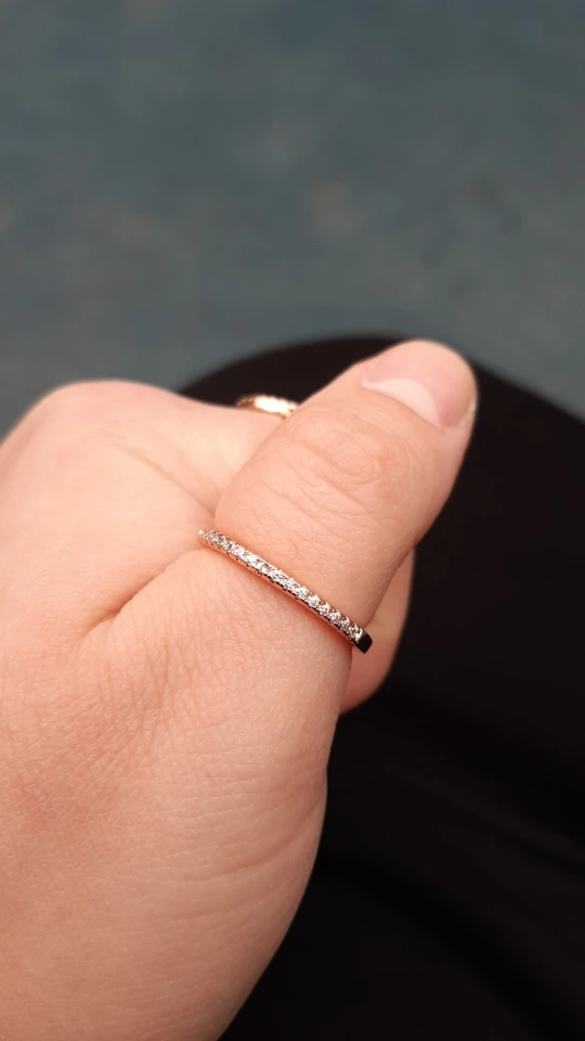 тоненькое колечко- моя любовь...и это тоже. надеть можно в любом сочетании, с любыми кольцами, перстнями. качество колечка хорошее. все камешки на месте. пришло колечко надежно упакованными.