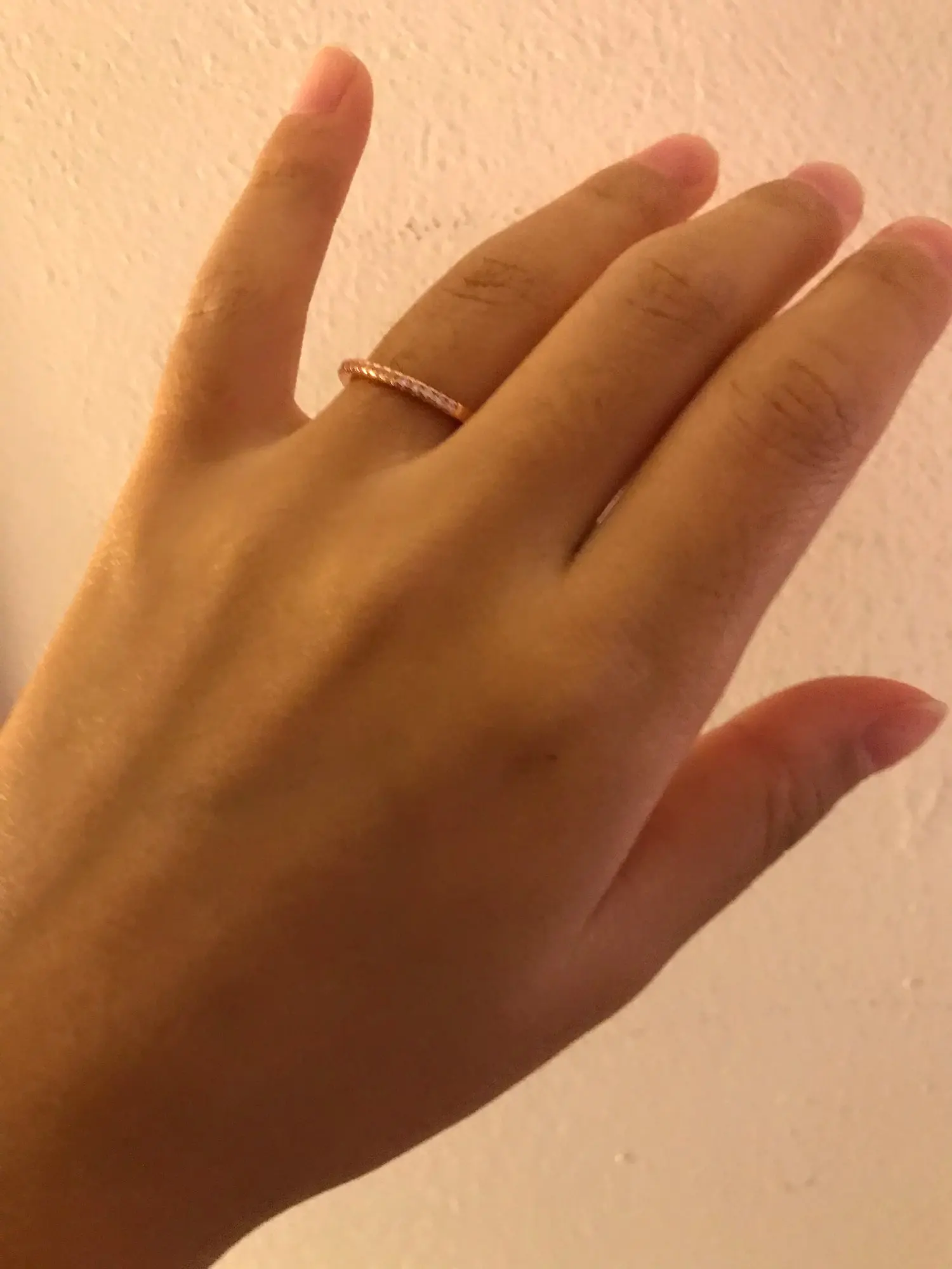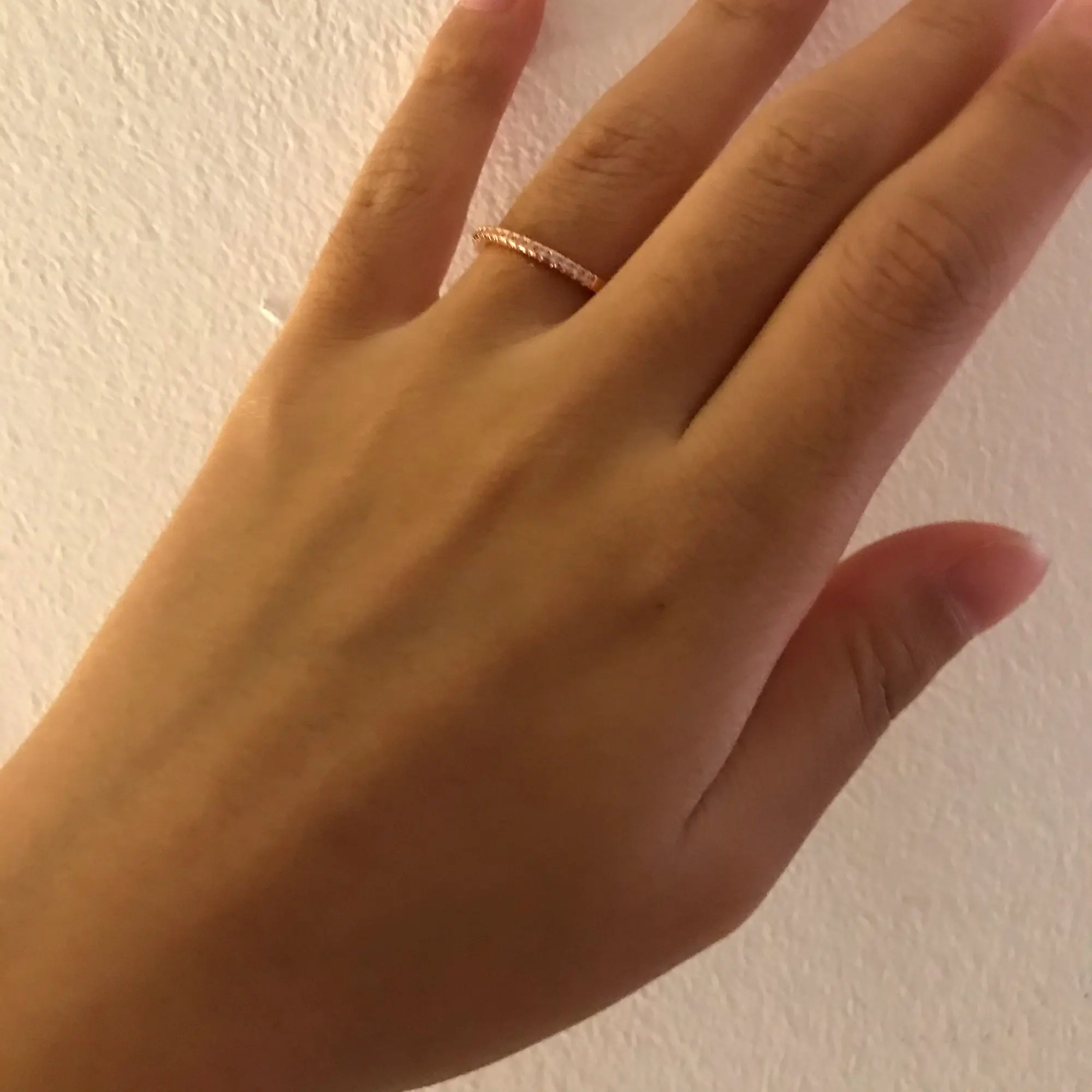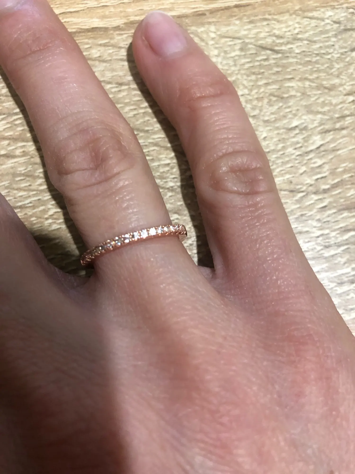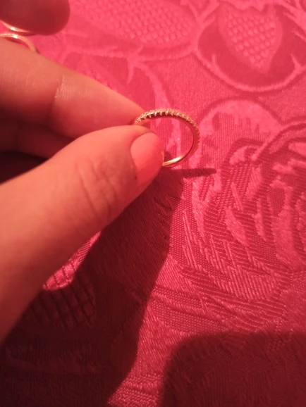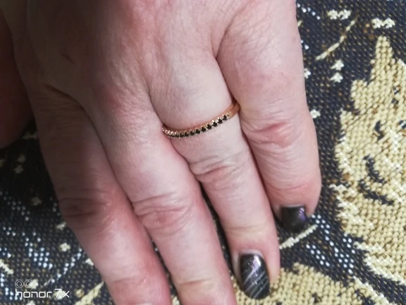 Кольцо супер, выглядит отлично. Я лоханулась, надо было брать жёлтое золото, а не розовое, для комплекта с другим кольцом (на фото видно разницу цвета), а так претензий к товару вообще нет, аккуратное. На 16,5 размер 6 сидит свободно (мне больше подходит 5,5, но этот тоже комфортно).