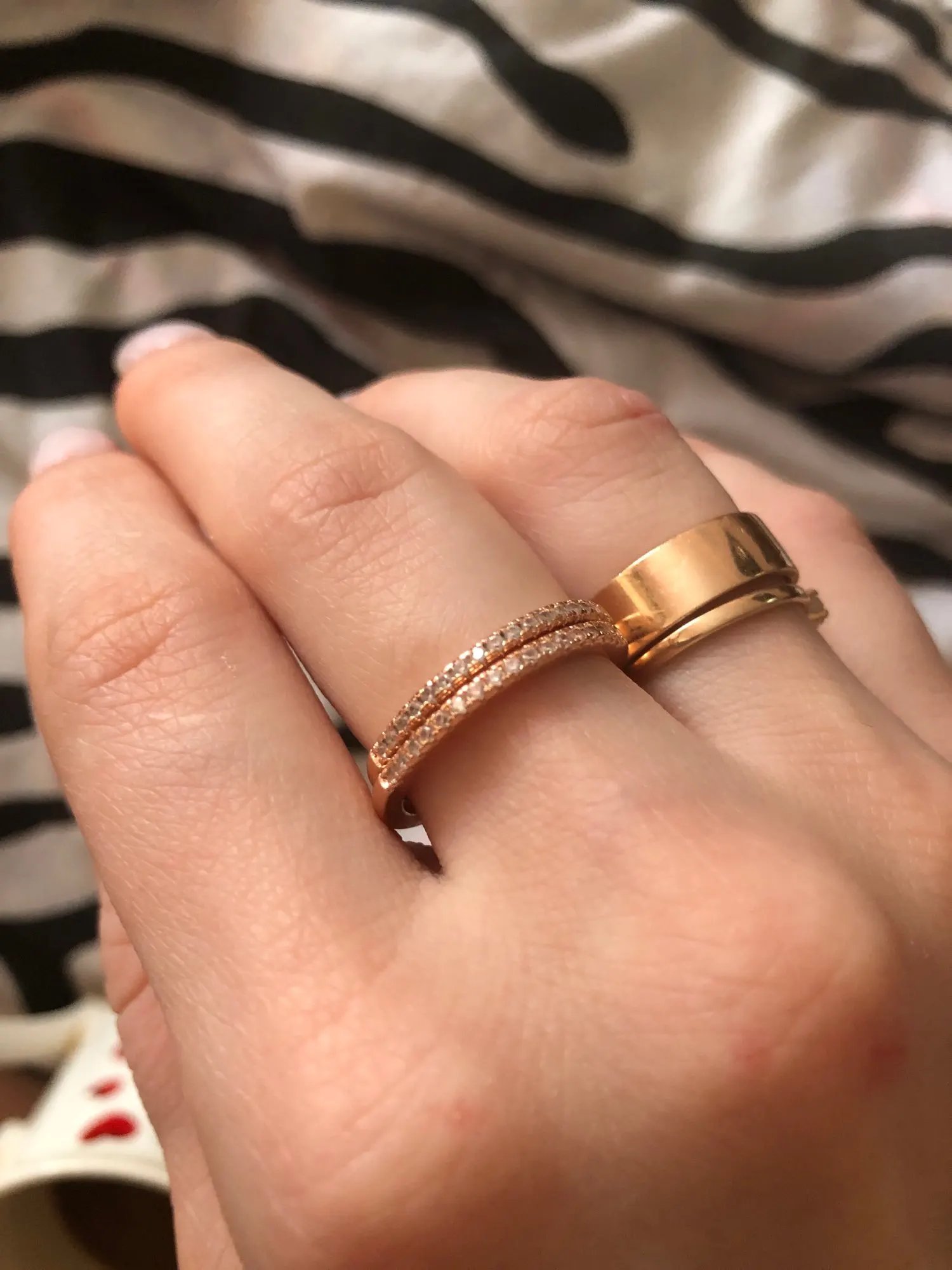 Колечки хорошенькие, просто прелесть. Заказала два, оказались даже лучше, чем на фото продавца. Очень довольна