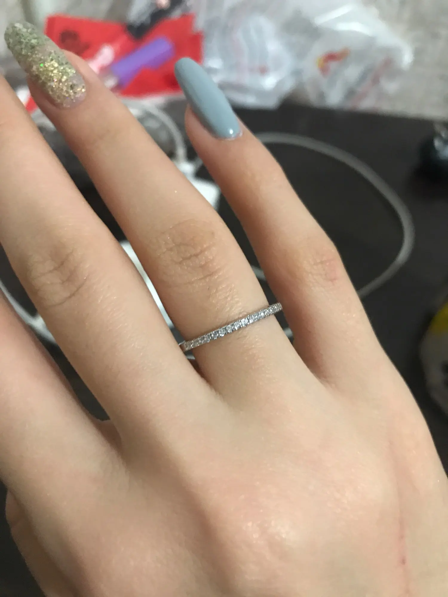 колечки красивые!! заказывала 5 штук беленьких и одно синенькую смотрится очень красиво как алмазная грань продавец молодец пришли быстро