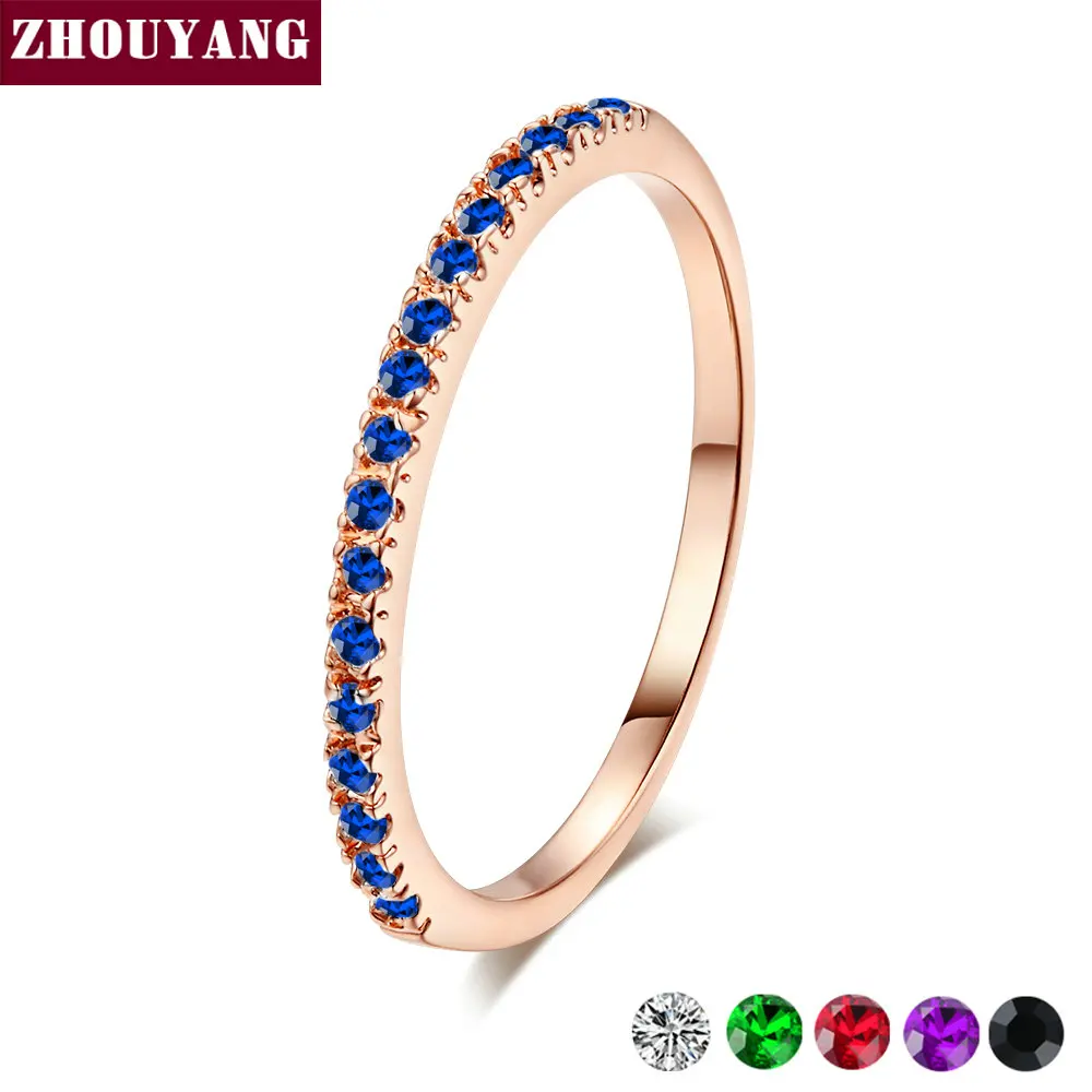 Обручальное кольцо ZHOUYANG для женщин и мужчин, лаконичное классическое многоцветное мини-кольцо с фианитом, розовое золото, подарок, модные украшения R251